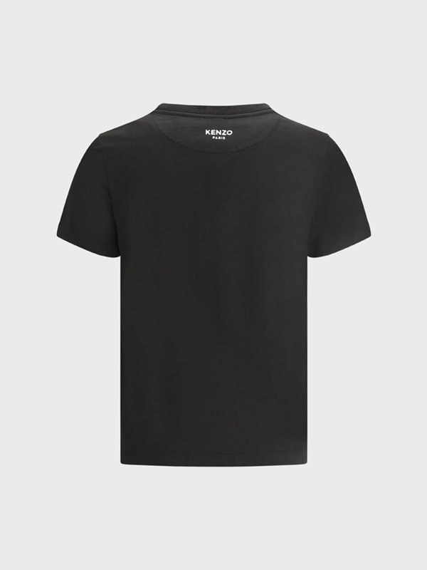 Cotton TShirt by Kenzo ribbed crew neck iconic brand logo patch applied in contrast on front monochrome pattern regular fit