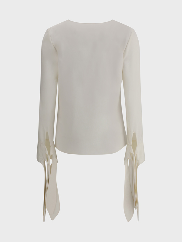 The Givenchy silk Blouse is an elegant and sophisticated piece perfect for those seeking a refined look but with a touch of originality The Vneckline on the front adds an accent of discreet sensuality while the knotted bows on the cuffs give a romantic and distinctive detail The iconic logo of the brand on the front adds a touch of recognisability without being too invasive Made of highquality silk this blouse is perfect for elegant occasions or to add a touch of luxury to a more casual look A piece that combines sophistication and modernity impeccably