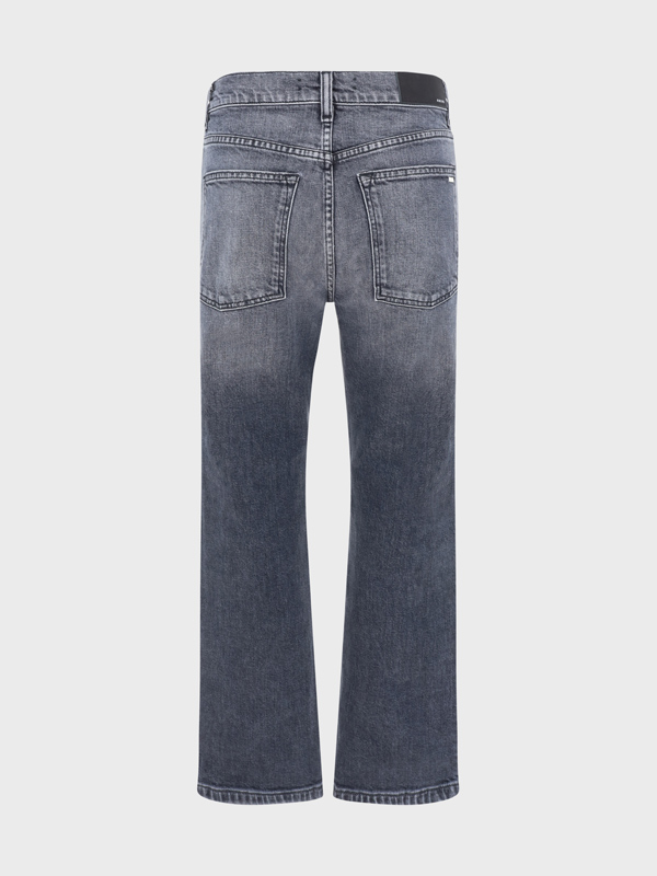 Cotton Denim Pants by Amiri fivepocket straight style front button closure belt loops waistband iconic leather patch with signature brand pressure print applied at back