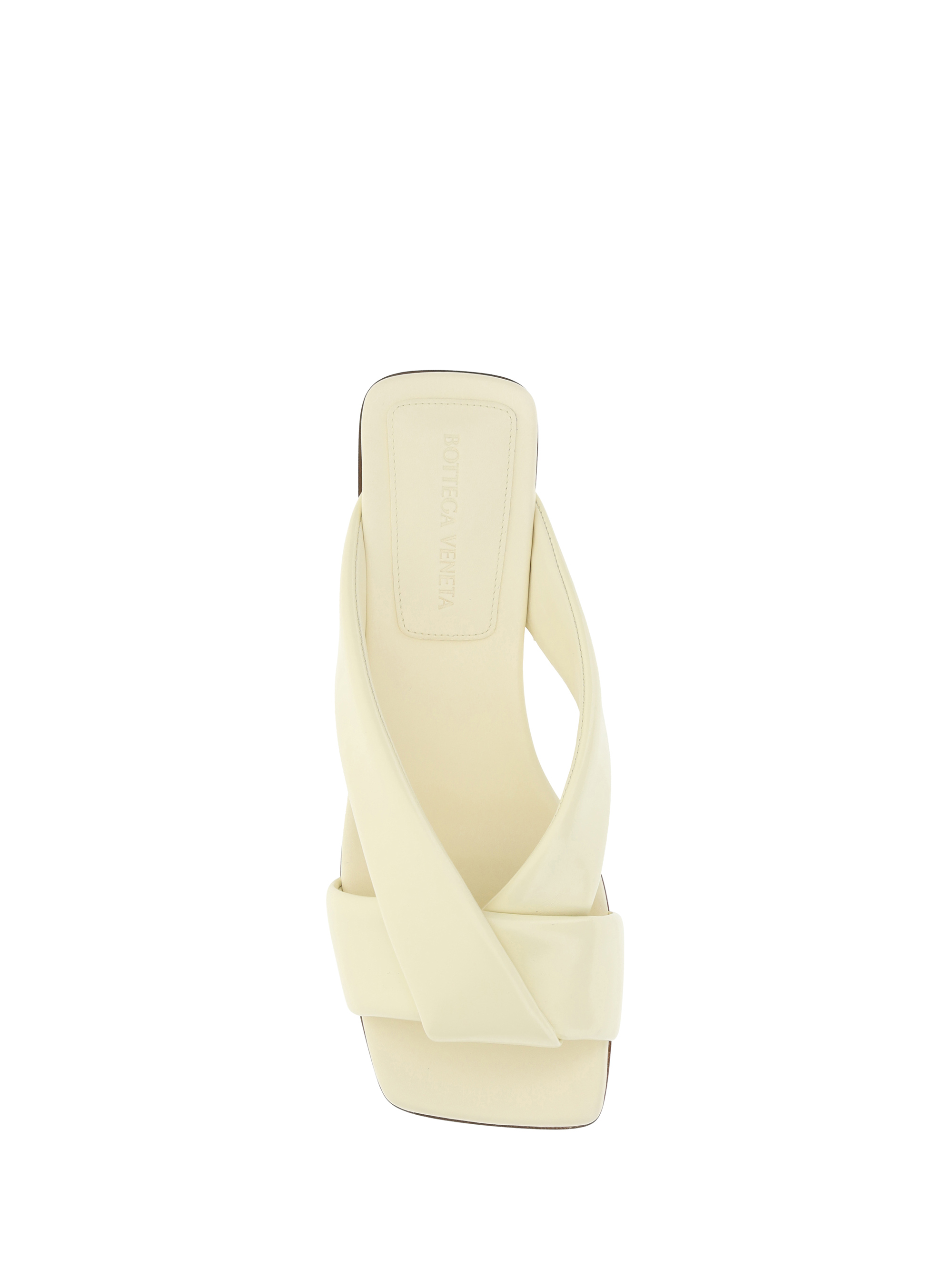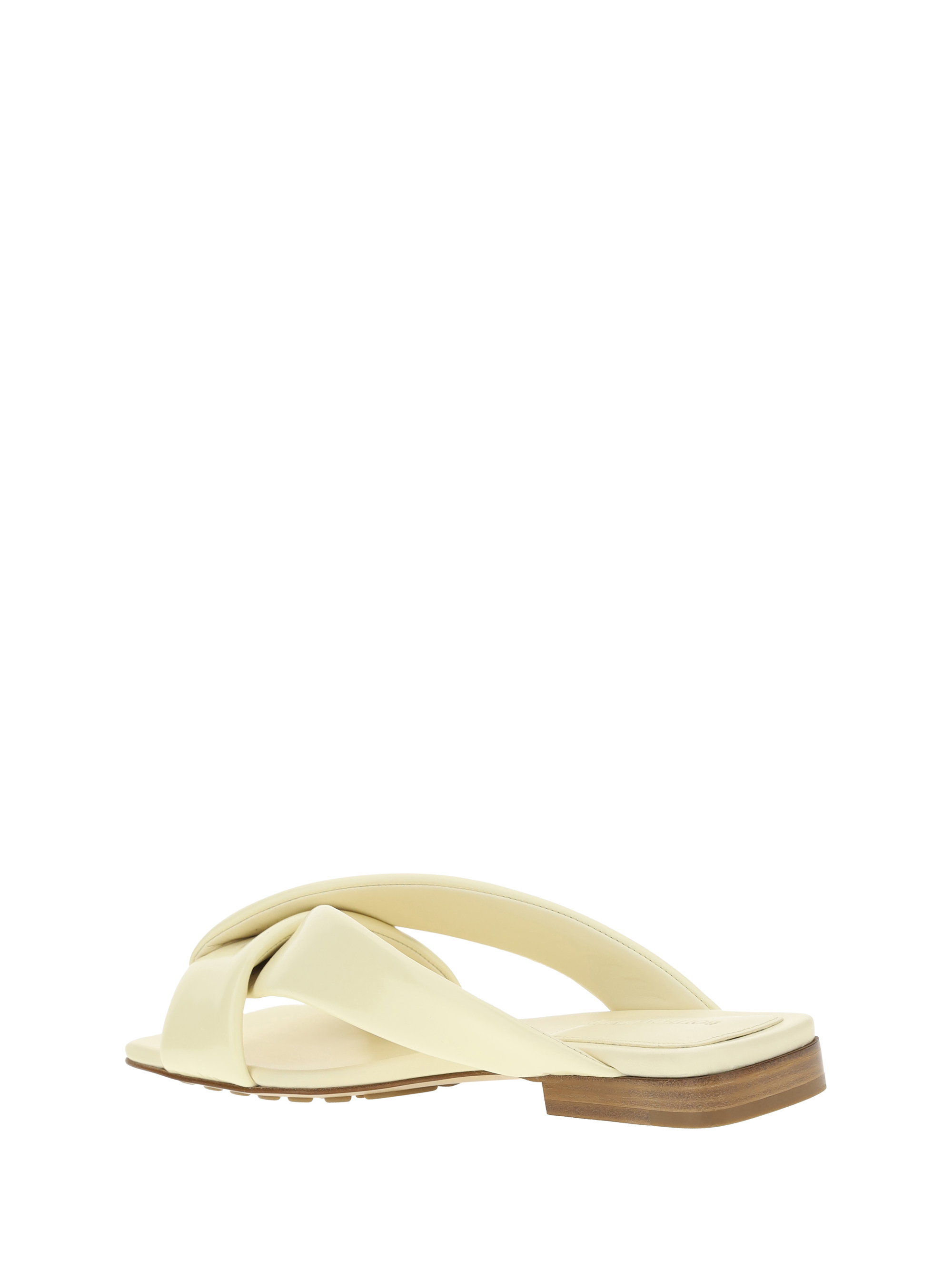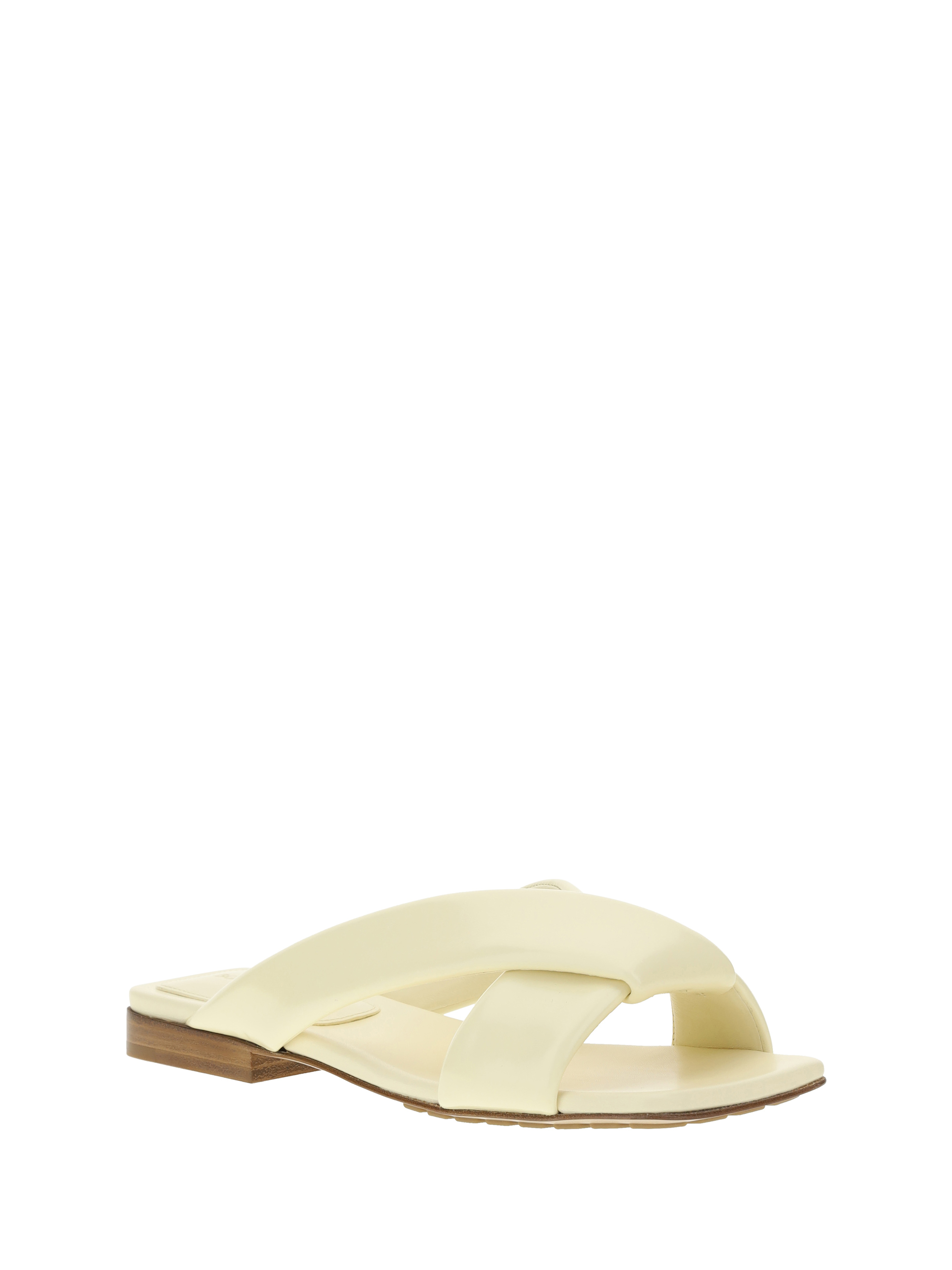 Bottega Venetas Riva Sandals are made of supple leather with a squared toe and a padded tubular strap that offers comfort The flat sole ensures stability while the logoed insole with the brands intrecciato pattern adds a distinctive touch of luxury and sophistication A sleek and modern style perfect for a contemporary look