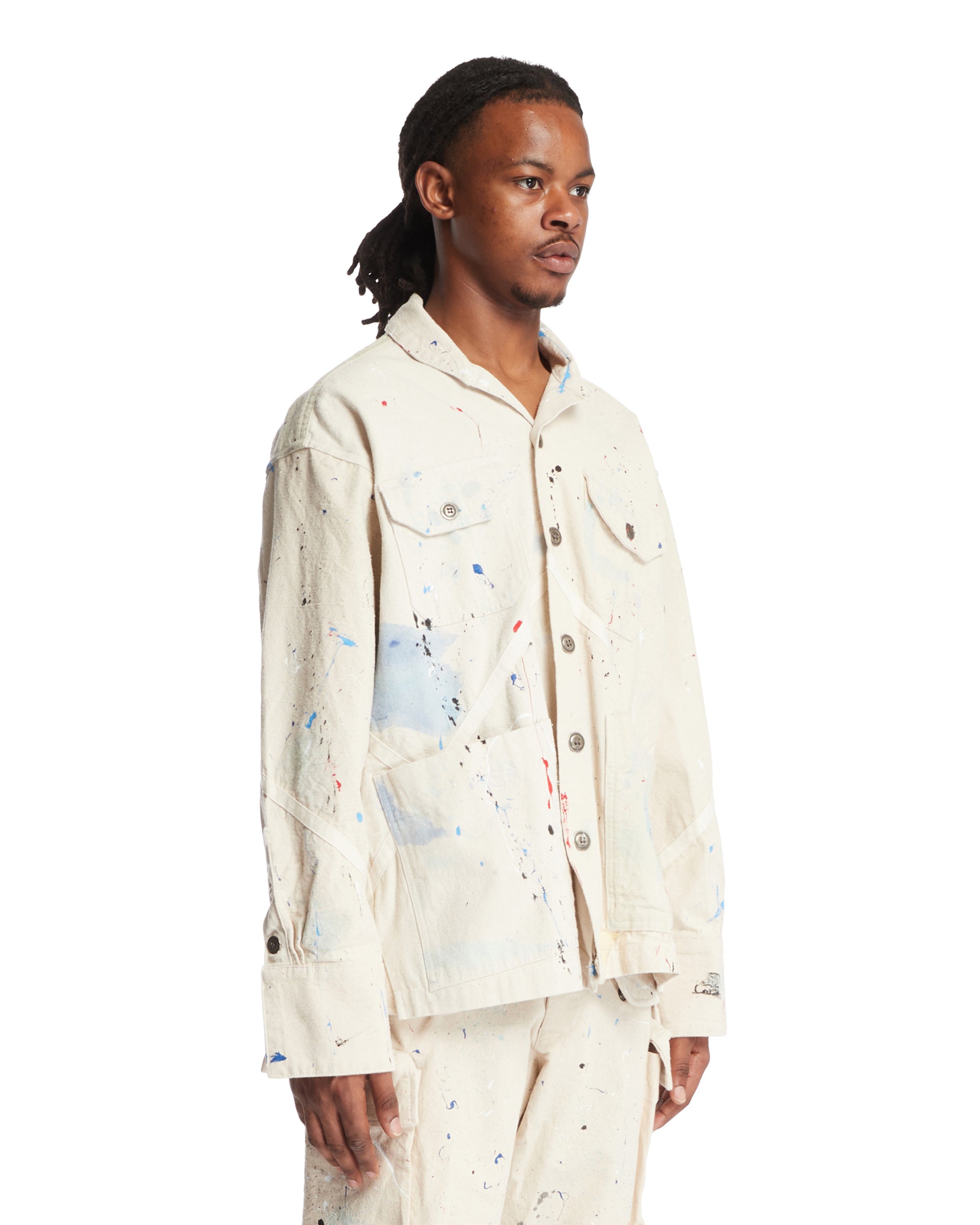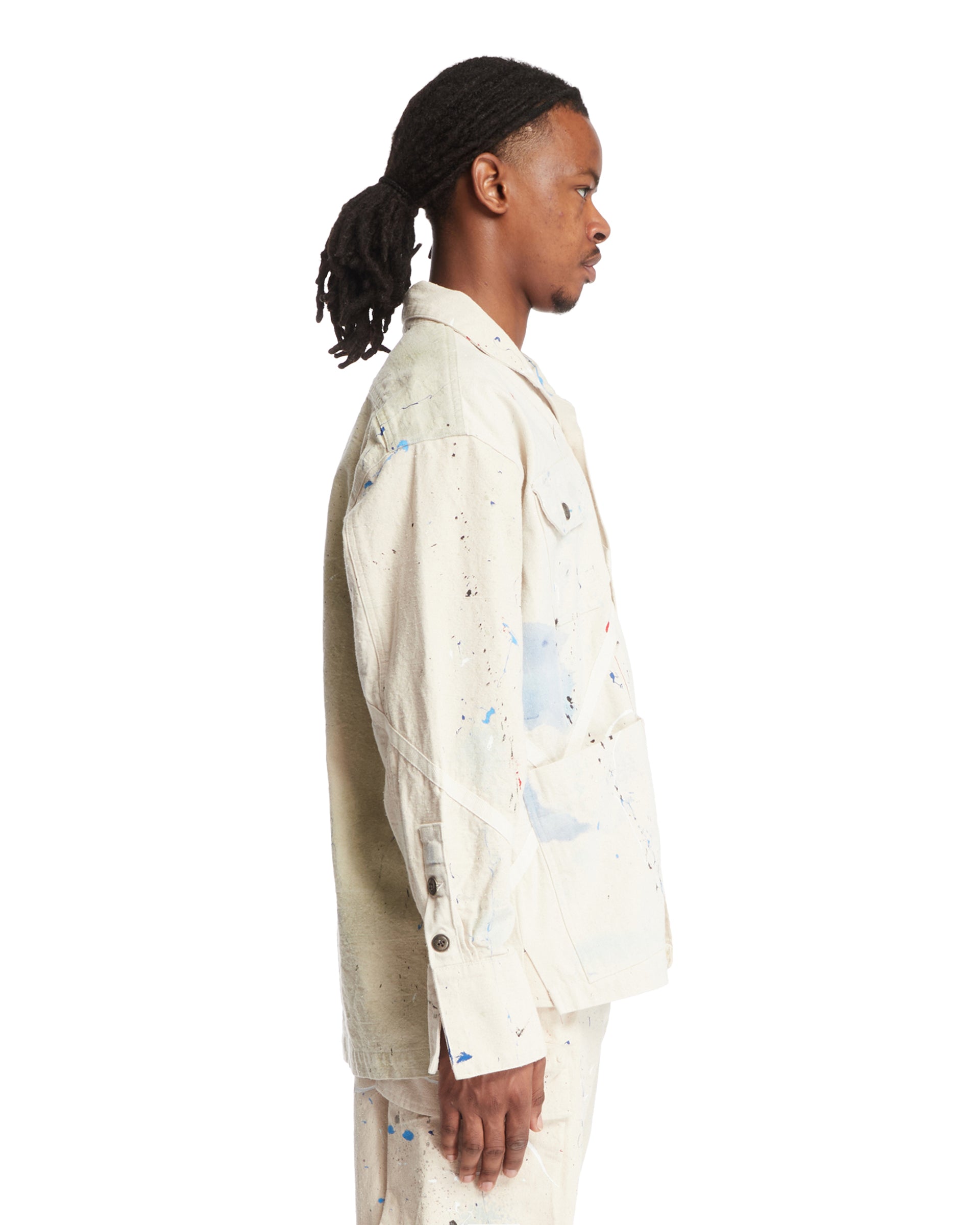 White Denim Jacket with Paint Splashes: buy the product by GREG LAUREN from. Enter the site and find out more details.