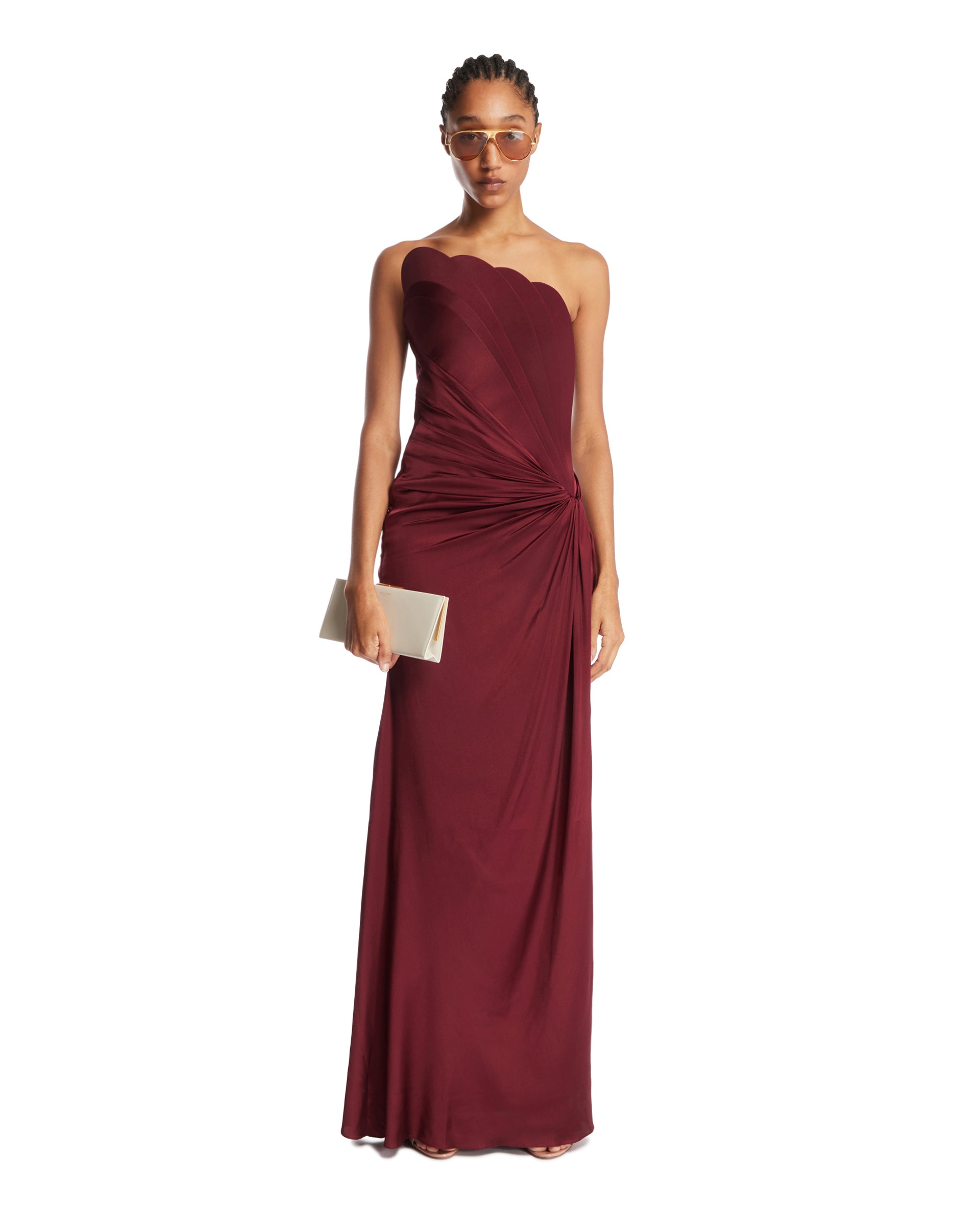 Burgundy Silk Long Dress: buy the product by GAURAV GUPTA from. Enter the site and find out more details.