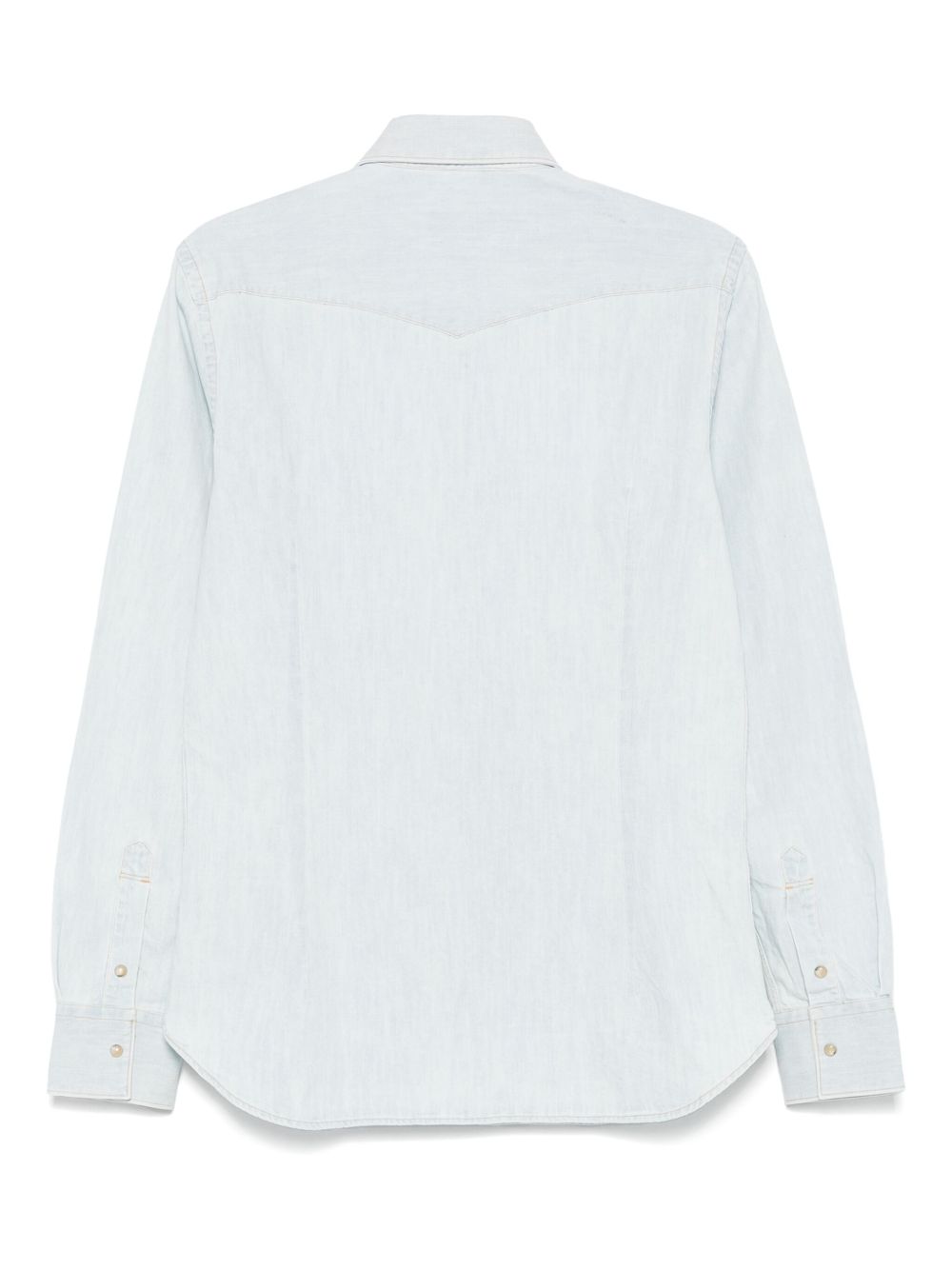 Discover our casual yet fashionable denim shirt, with front button closure and a practical front pocket. Crafted from high-quality denim, this shirt offers both durability and style. The front buttons add a classic touch, while the front pocket adds functionality and modernity. Versatile and easy to match, this shirt is perfect for completing your casual look or adding a casual touch to a more formal outfit. | Tintoria Mattei
