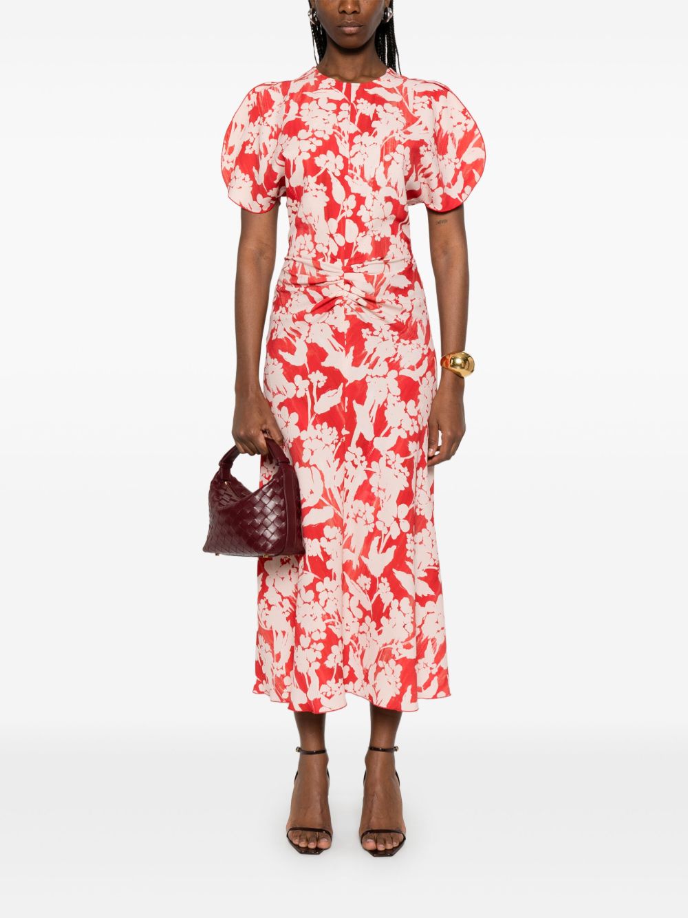 bright red hidden hook and zip back closure split cuffs gathered details round neckline | Victoria Beckham