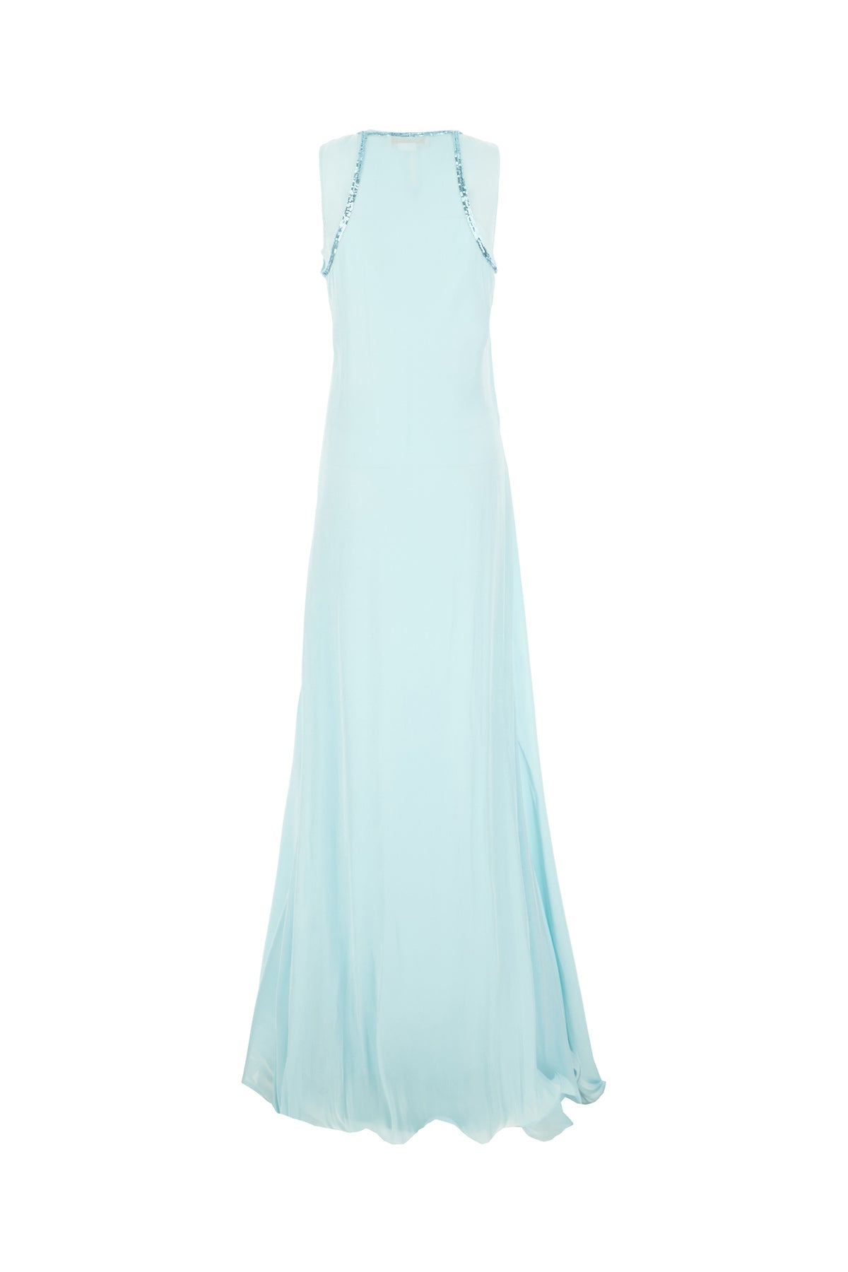> 파스텔 라이트 블루 비스코스 롱 드레스