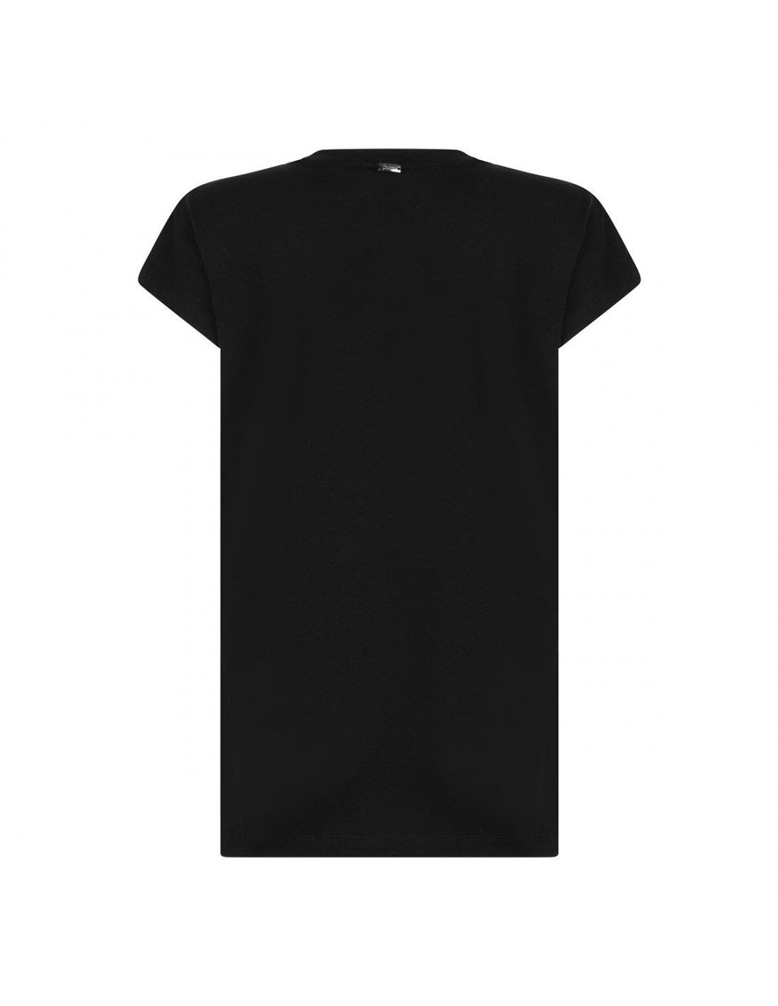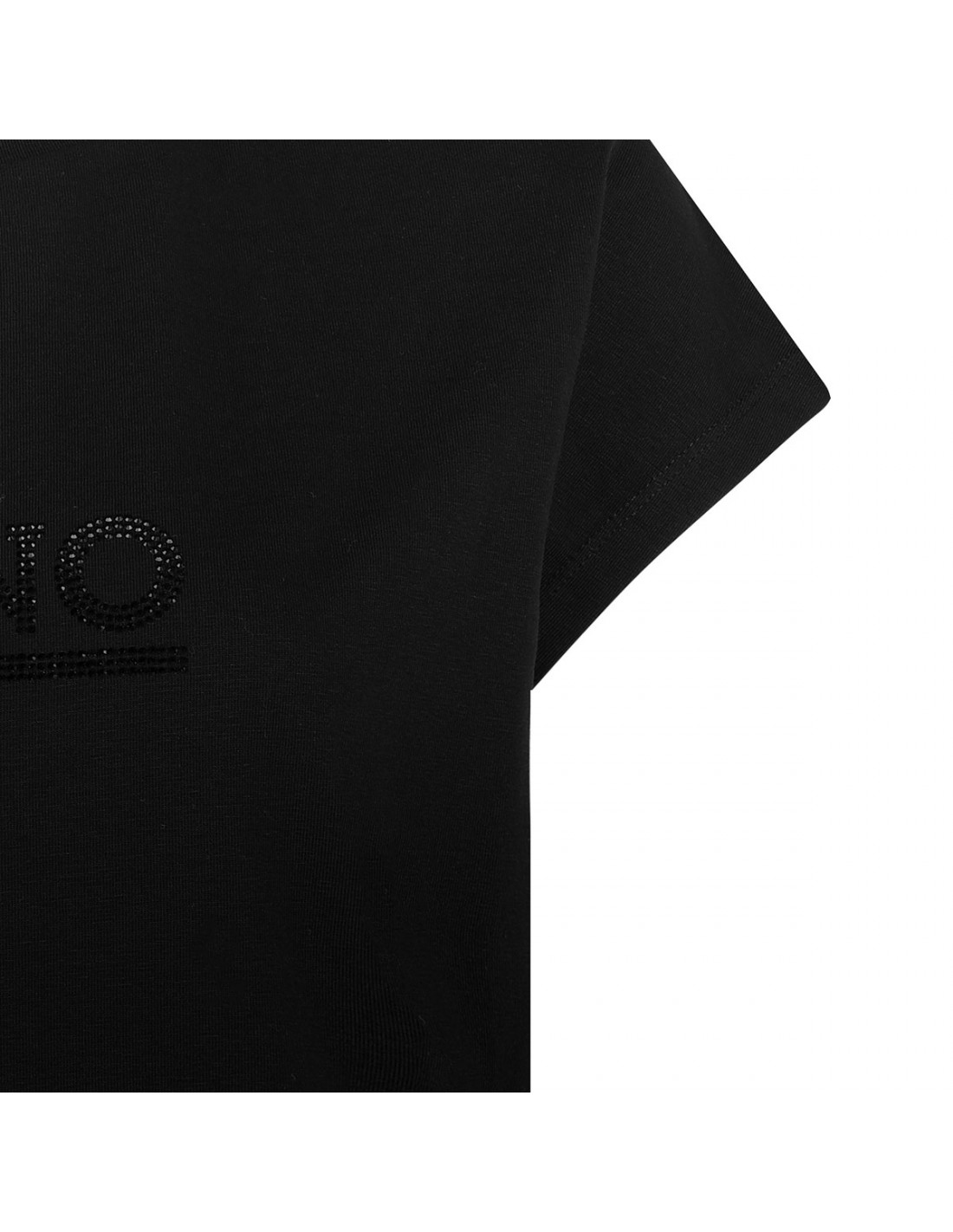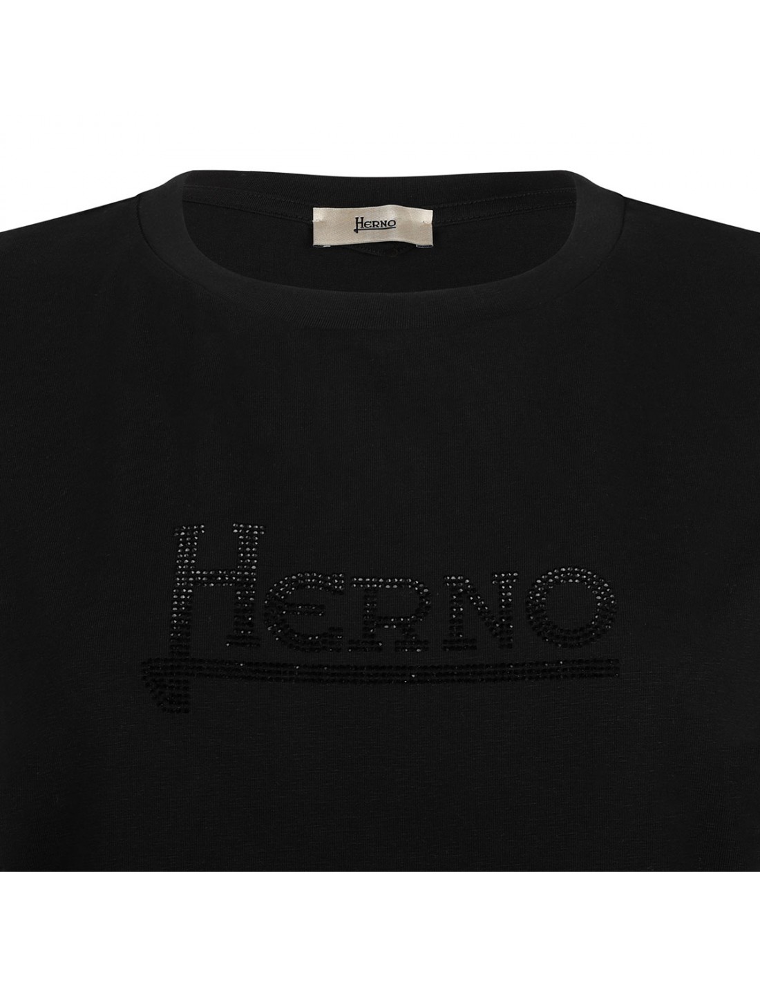Black compact stretch cotton interlock jersey T-shirt from Herno featuring chest printed logo with rhinestone embellishment, crew-neck, short cap sleeves, regular fit.