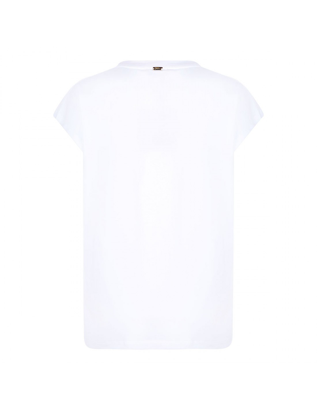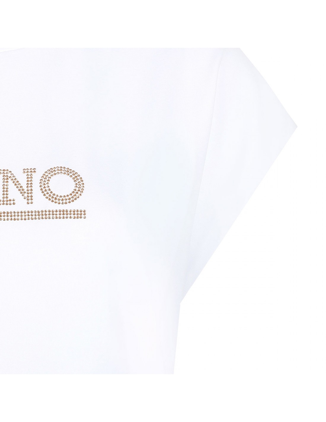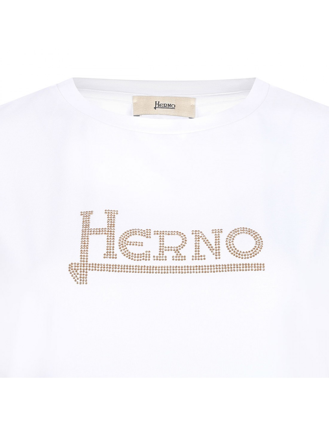 White compact stretch cotton interlock jersey T-shirt from Herno featuring chest printed logo with rhinestone embellishment, crew-neck, short cap sleeves, regular fit.