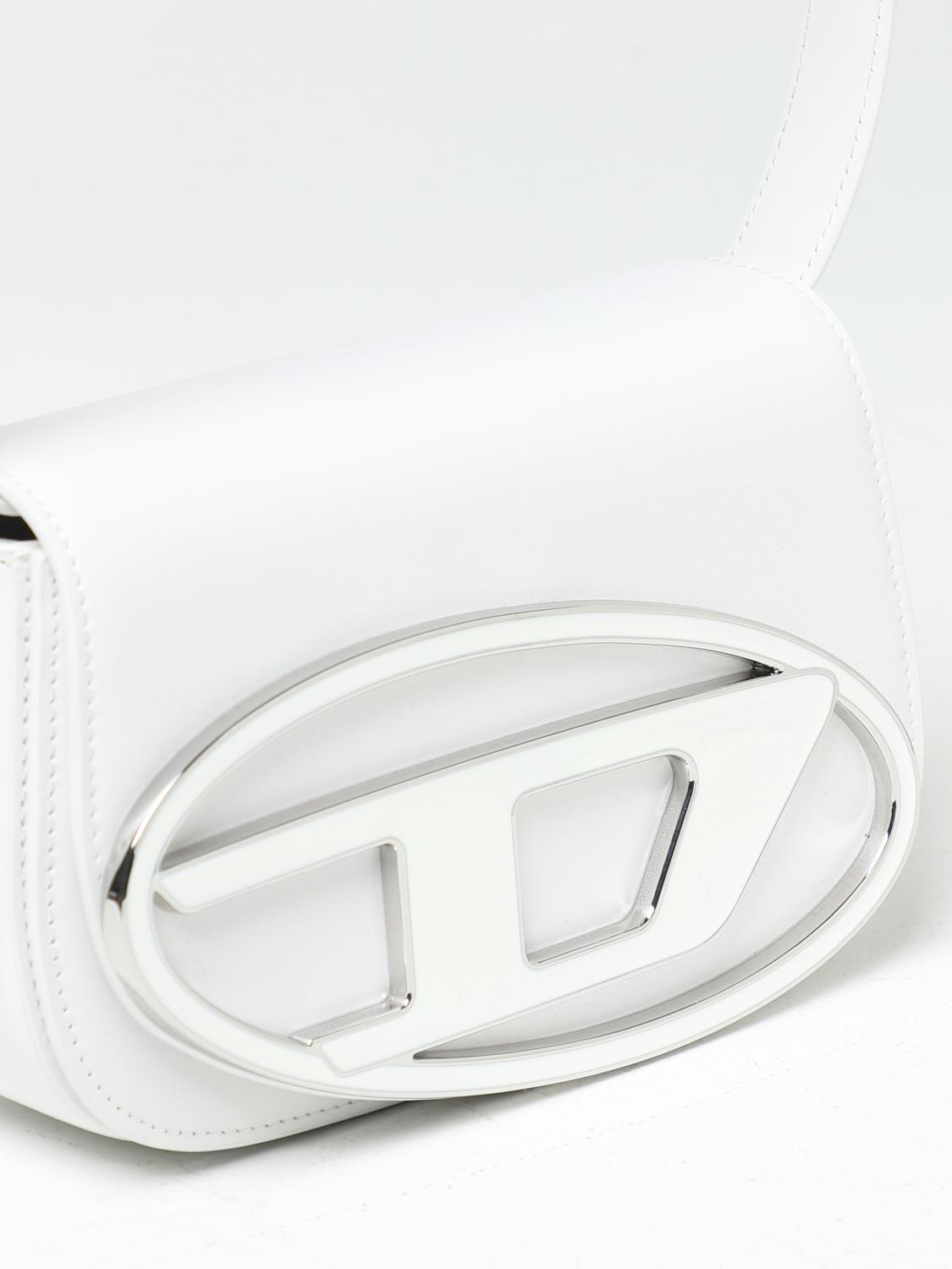 - Rounded design - Shoulder model - Mini - Smooth leather - Maxi 'D' Diesel in metal - Closure with flap and magnetic button - Fabric interior - Leather finishes - Two slit pockets - Patch pocket - Application with embossed logo - Flat leather shoulder strap - Adjustable and removable - Shoulder strap length: 57 cm - Smooth leather handle