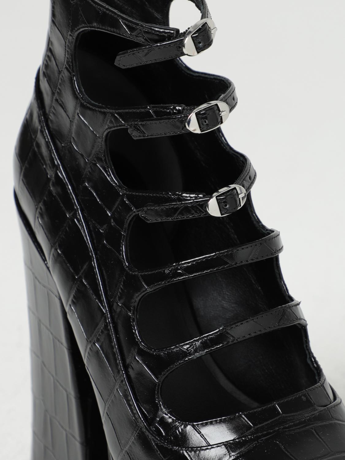 - Modern design - Glamorous style - Model with plateau - Croco print leather - Glossy finish - Round tip - Adjustable straps - Leather interior - Logo applied on the insole - Chunky heel - Real leather sole