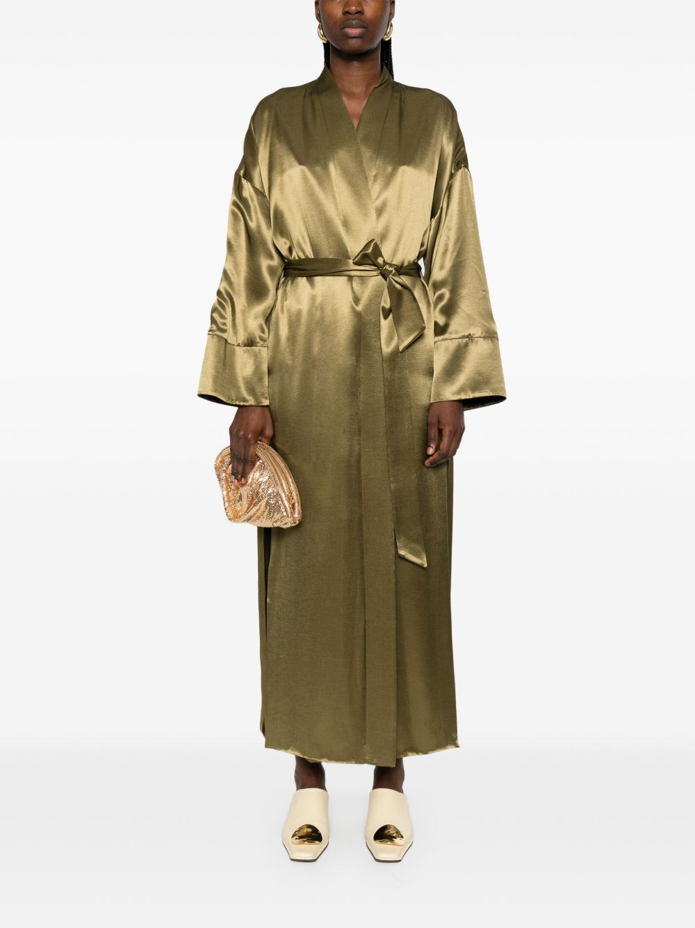 Wraparound design, long sleeves, belted model and below-the-knee length. | THE NINA STUDIO