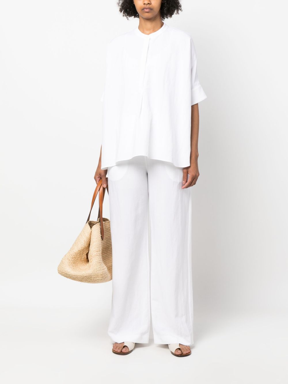 Cenere GB has selected this item for its high stylistic content and its eco-sustainability. Cenere GB White trousers, regular waist with elastic band for greater comfort, flared cut, two pockets. | Cenere GB White trousers Abb.to donna IT