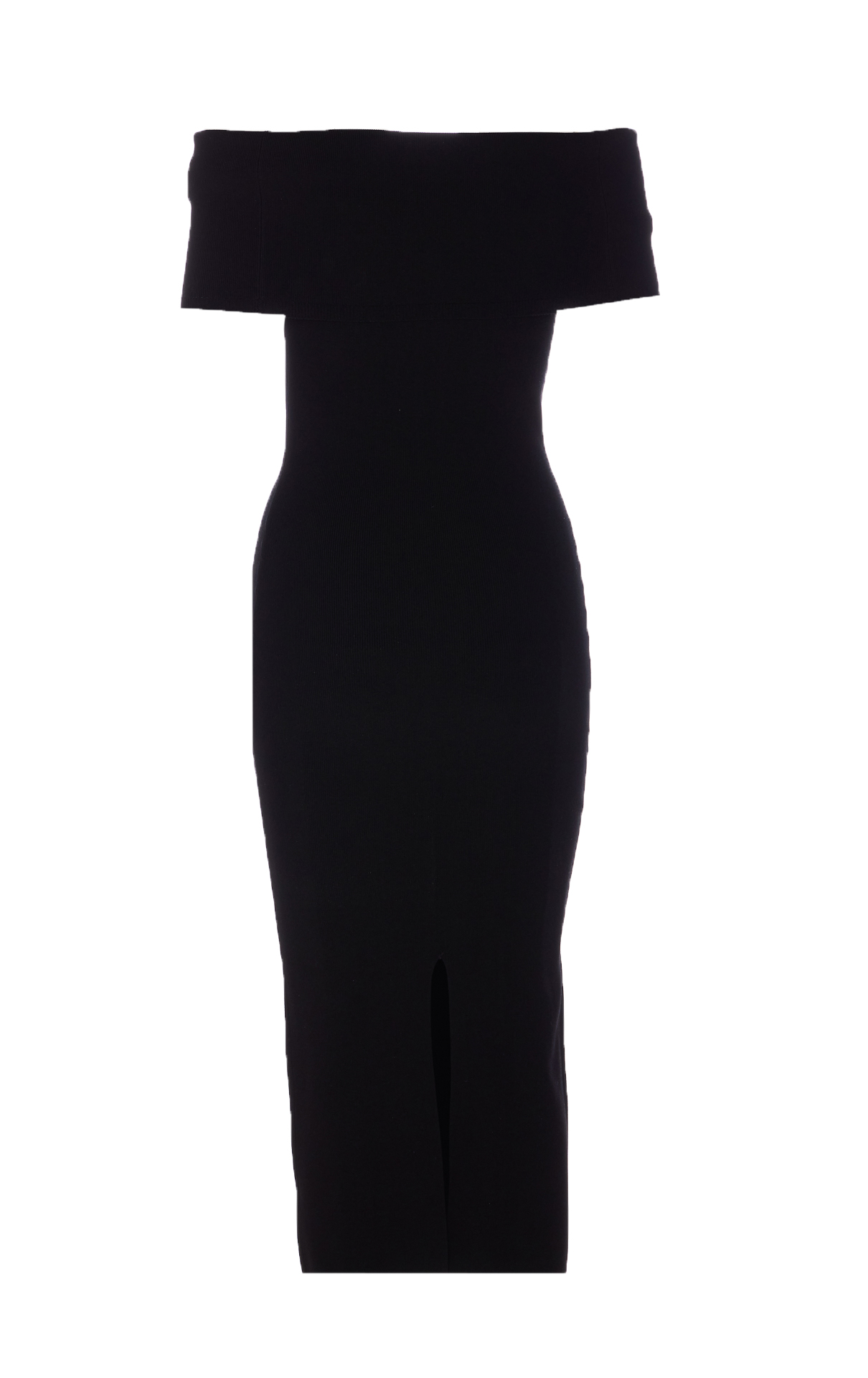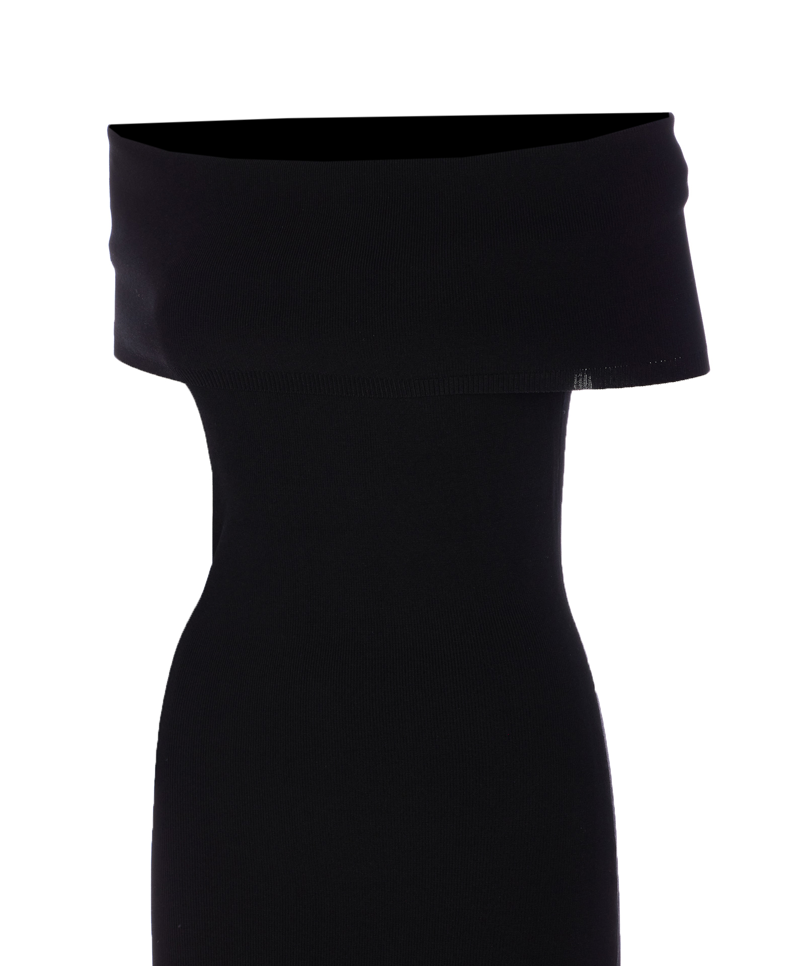 > 스트레치 니트 드레스 위드 오픈 숄더