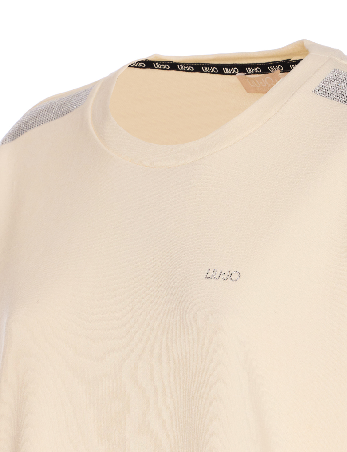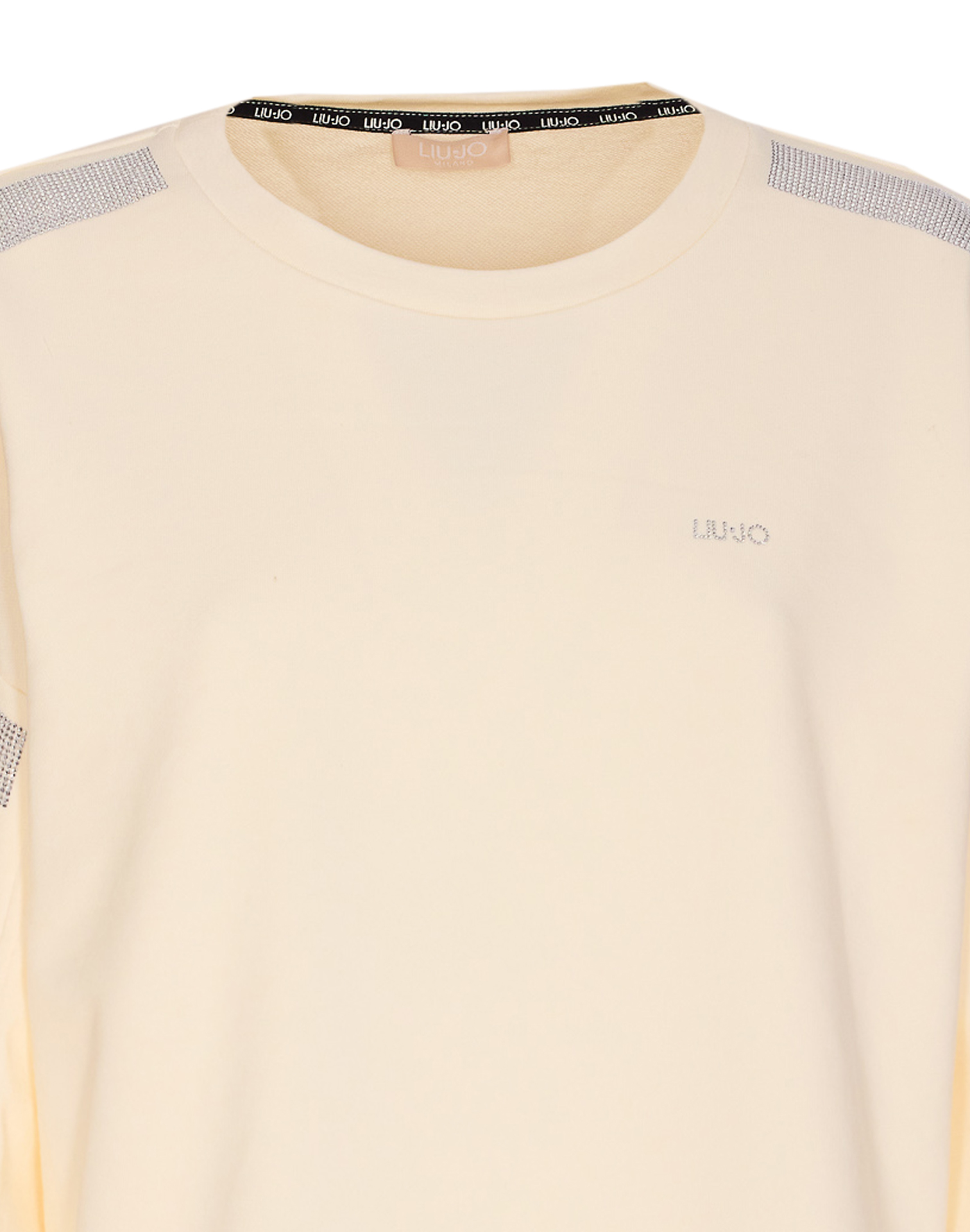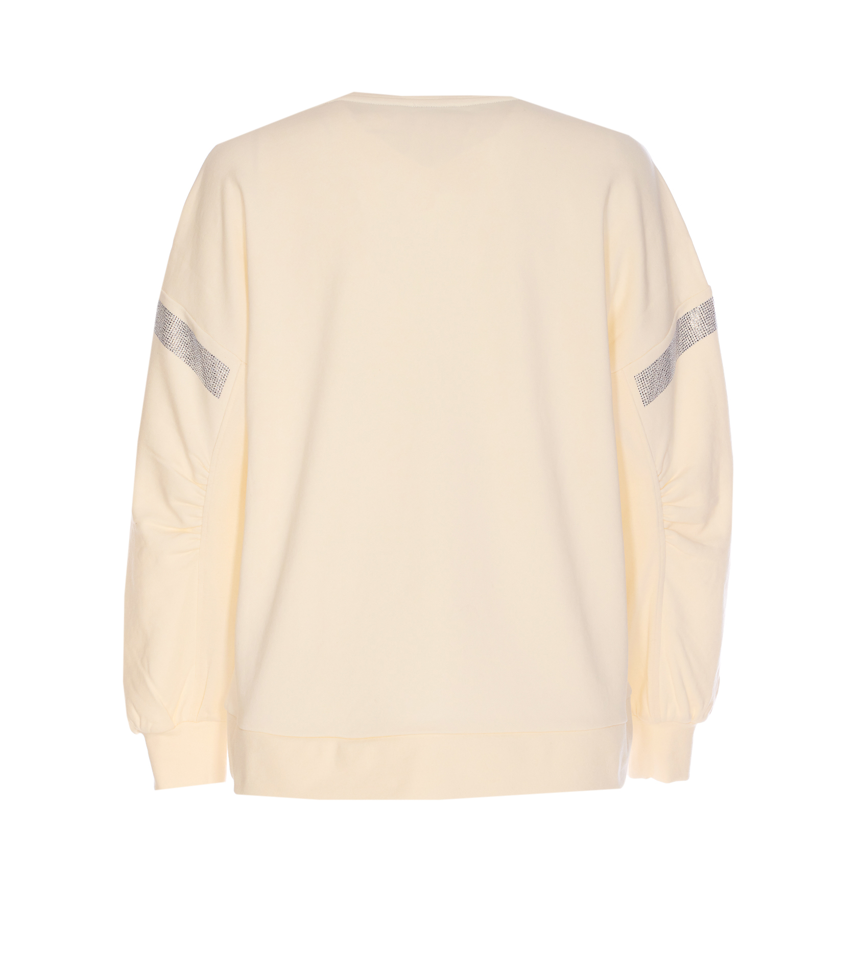 > 화이트 스웨트 셔츠 위드 라인스톤