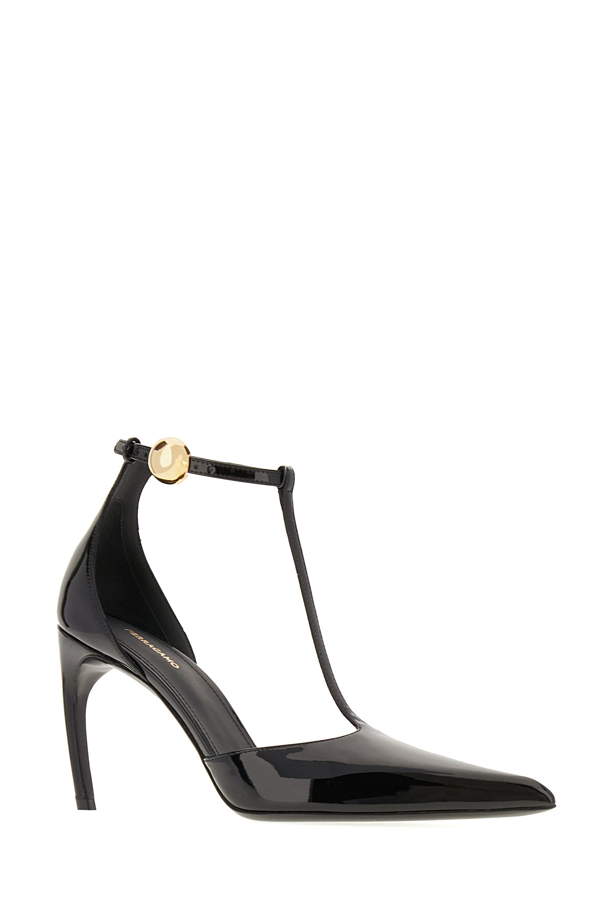 블랙 레더 티 스트랩 펌프스