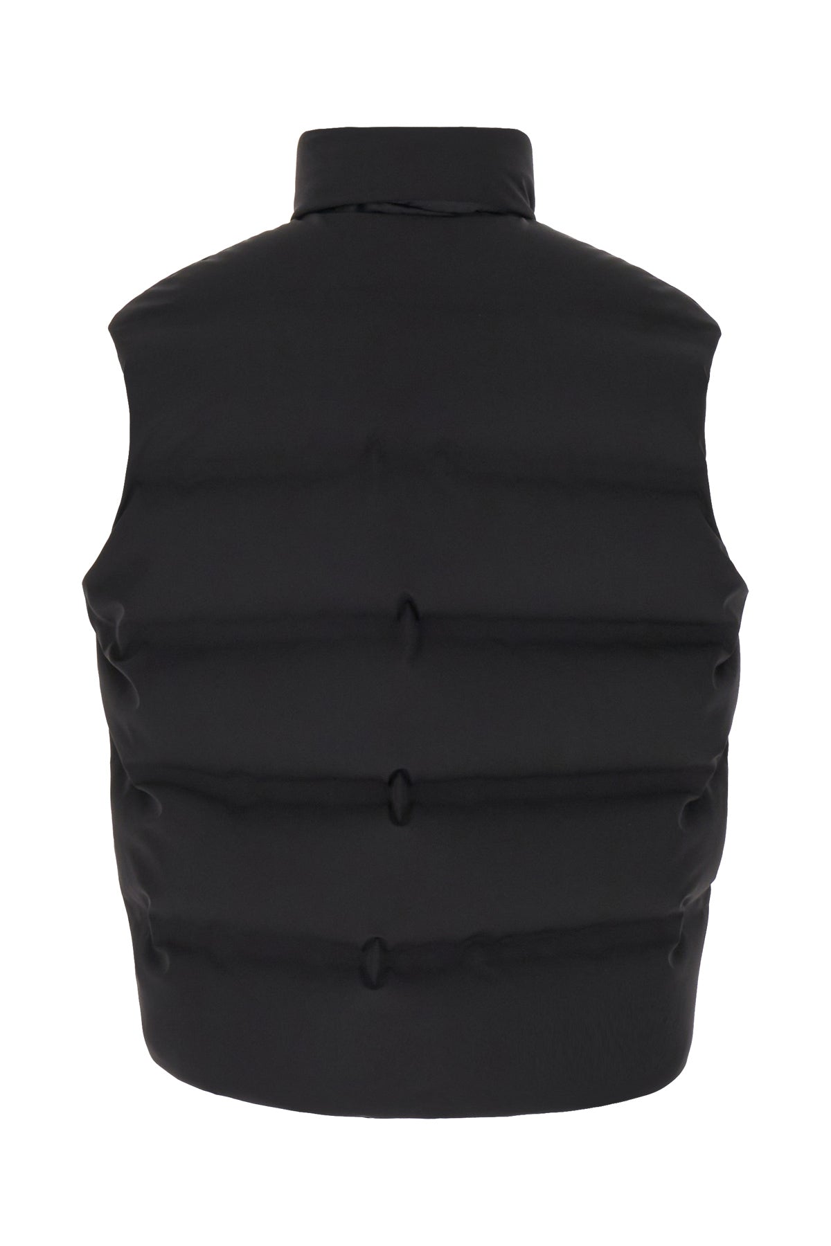 > 블랙 스트레치 나일론 블렌드 슬리브리스 패딩 자켓