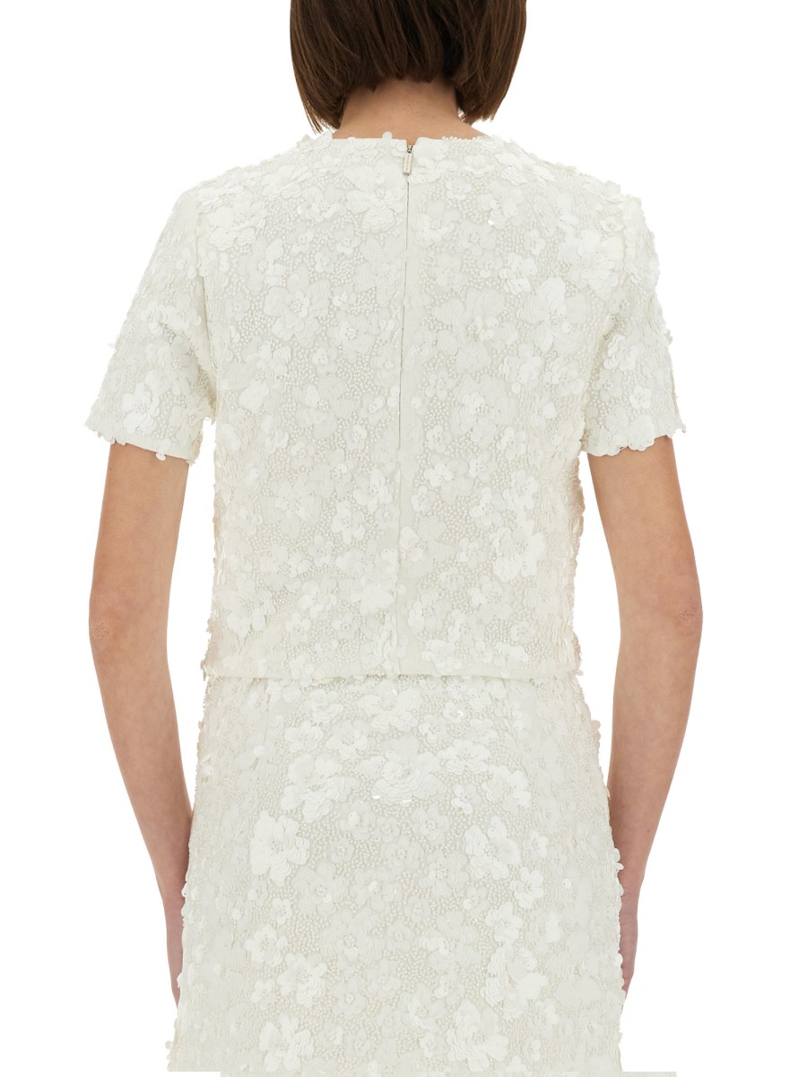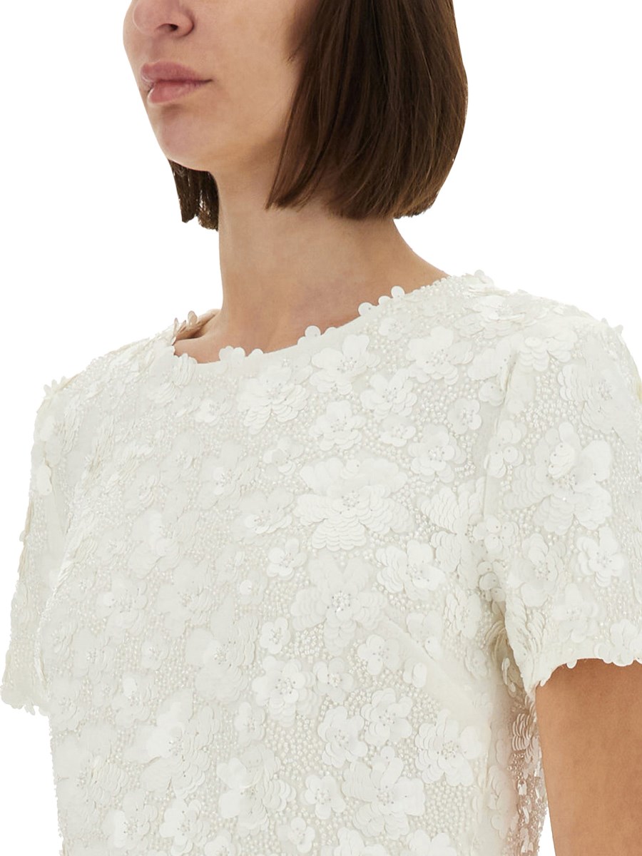 > 스쿠버 패브릭 탑 위드 플로랄 APPLIQUÉS