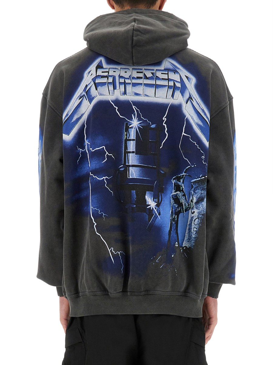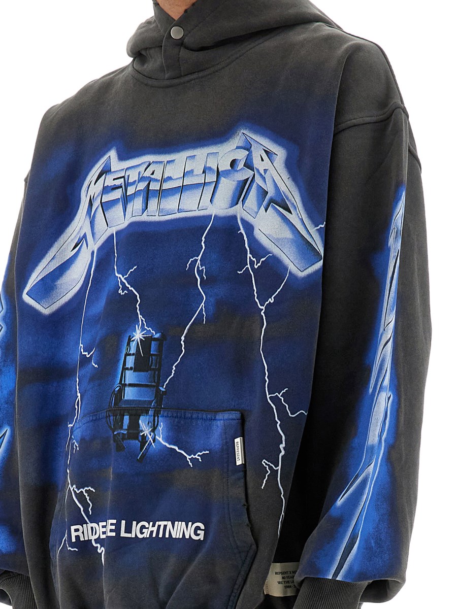 코튼 스웨트 셔츠 위드 RIDE 더 LIGHTNING 프린트 AND 후드