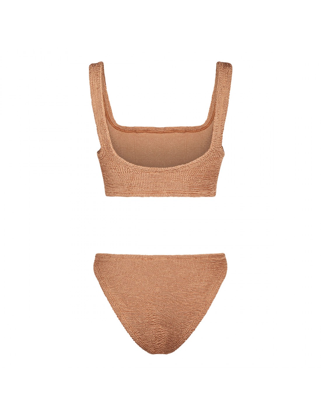 Metallic cocoa Original Crinkle™ fabric Xandra bikini set from Hunza G featuring bra with scoop neck and wide shoulder straps, classic bottom.