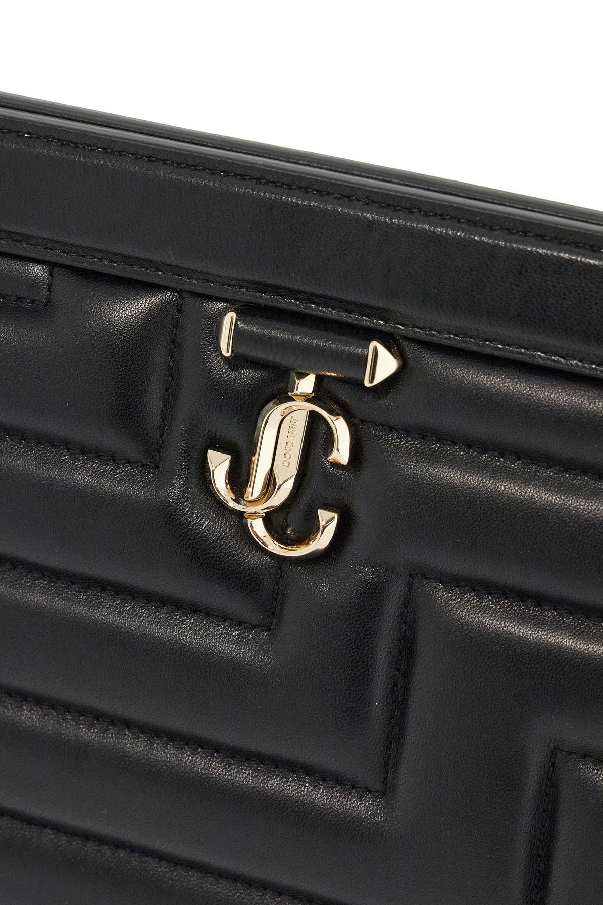The Jimmy Choo pouch is made of soft nappa leather with the iconic Avenue matelassAⓒ pattern. The design is completed with the emblematic JC logo in gold metal on the front. It features expandable sides and a magnetic closure, as well as a microsuede interior with an open pocket.