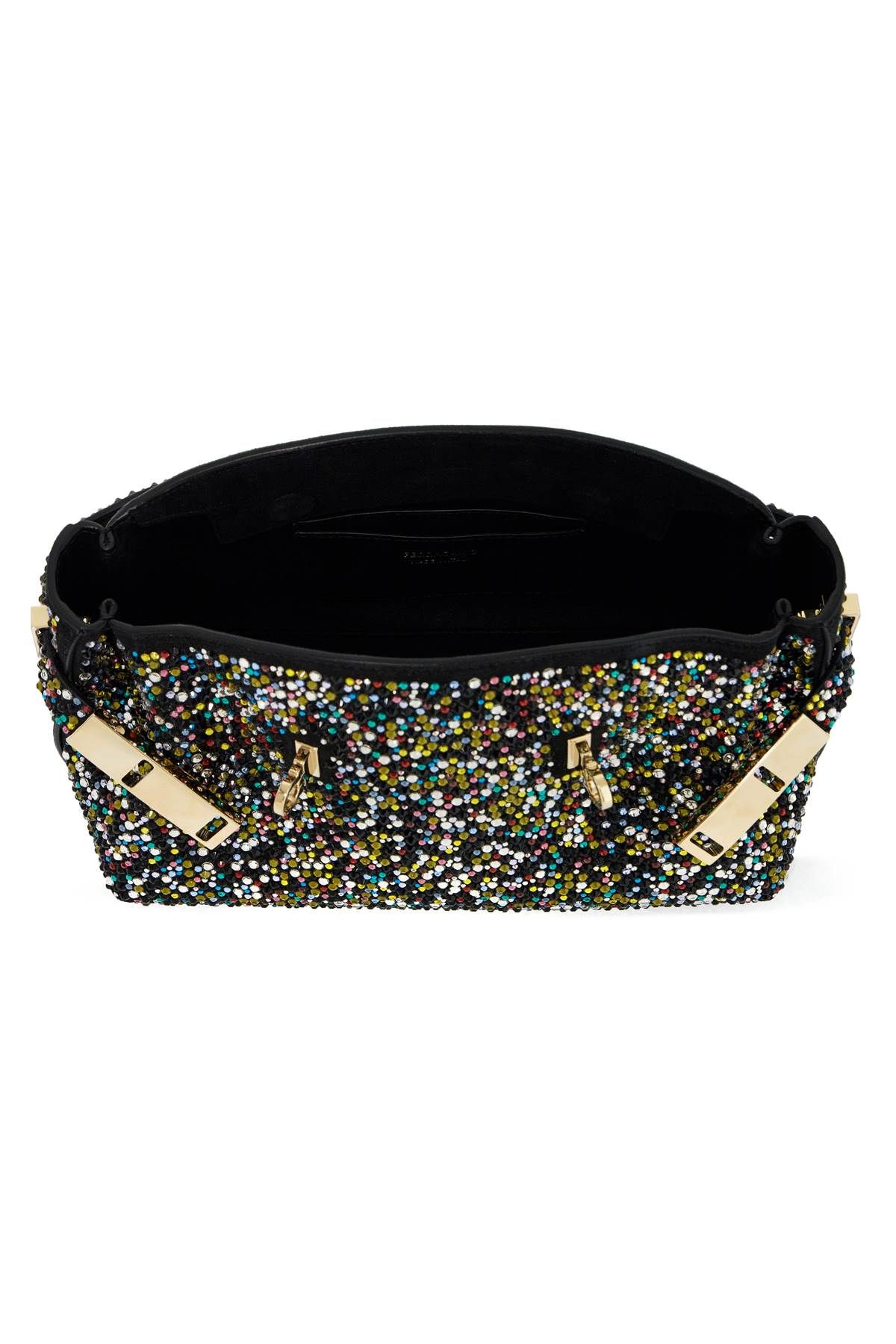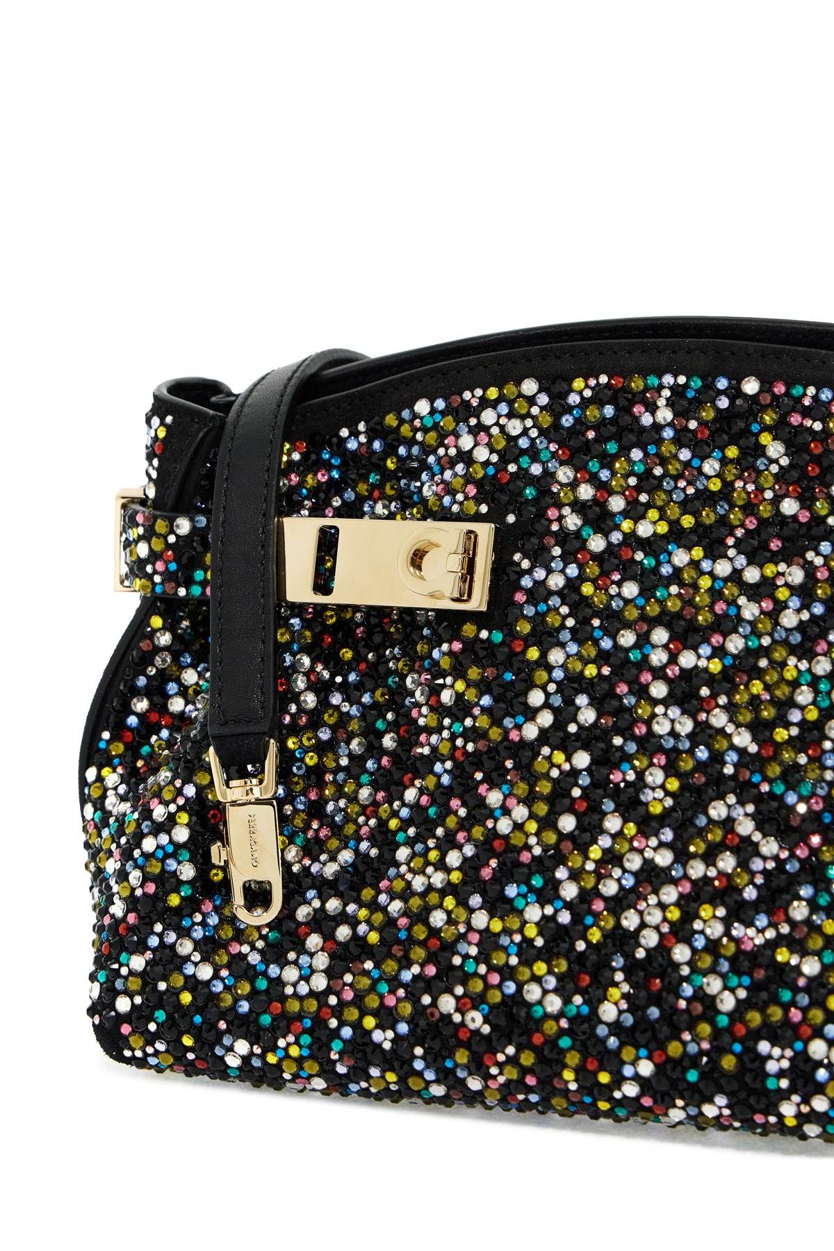 The FERRAGAMO Hug Clutch is made of soft suede leather studded with hand-applied multicolored micro crystals