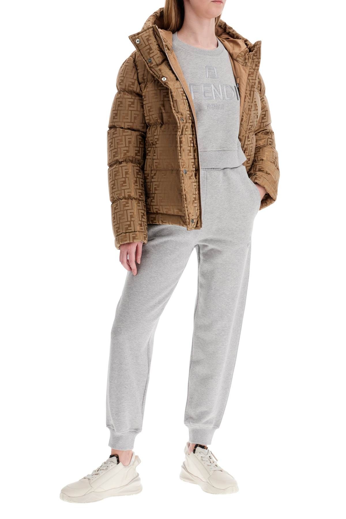 Fendi jogger pants made of double jersey with brushed interior and finished with Fendi Roma embroidery in tone on the left leg