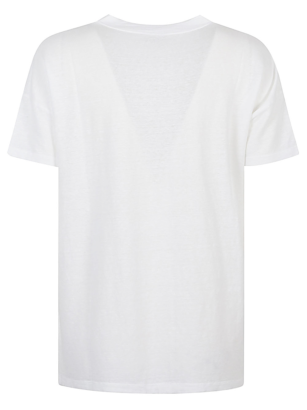 White T-shirt, crew neck, straight hem.