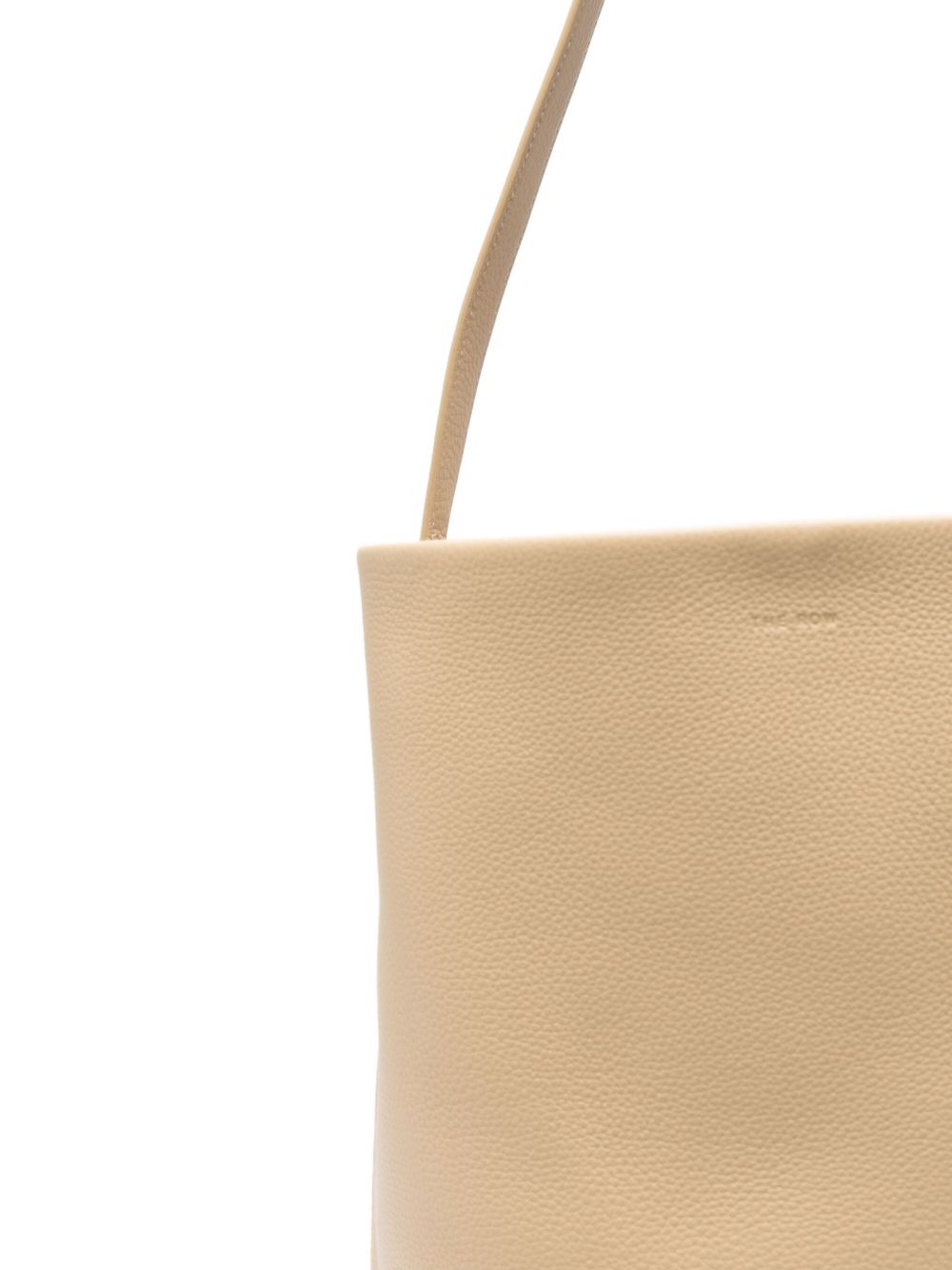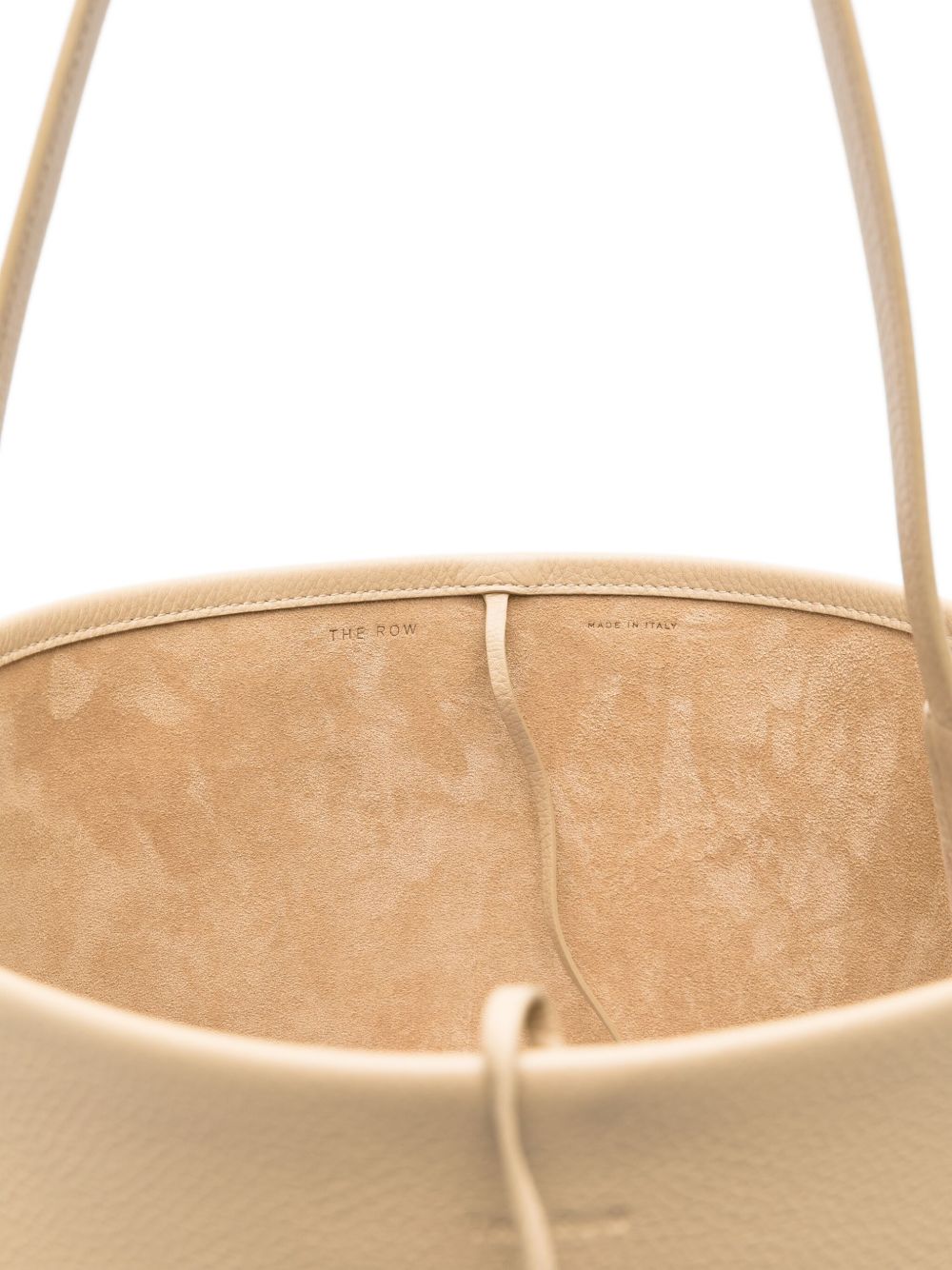 Sand color, top knot closure, single shoulder strap design and suede lining.