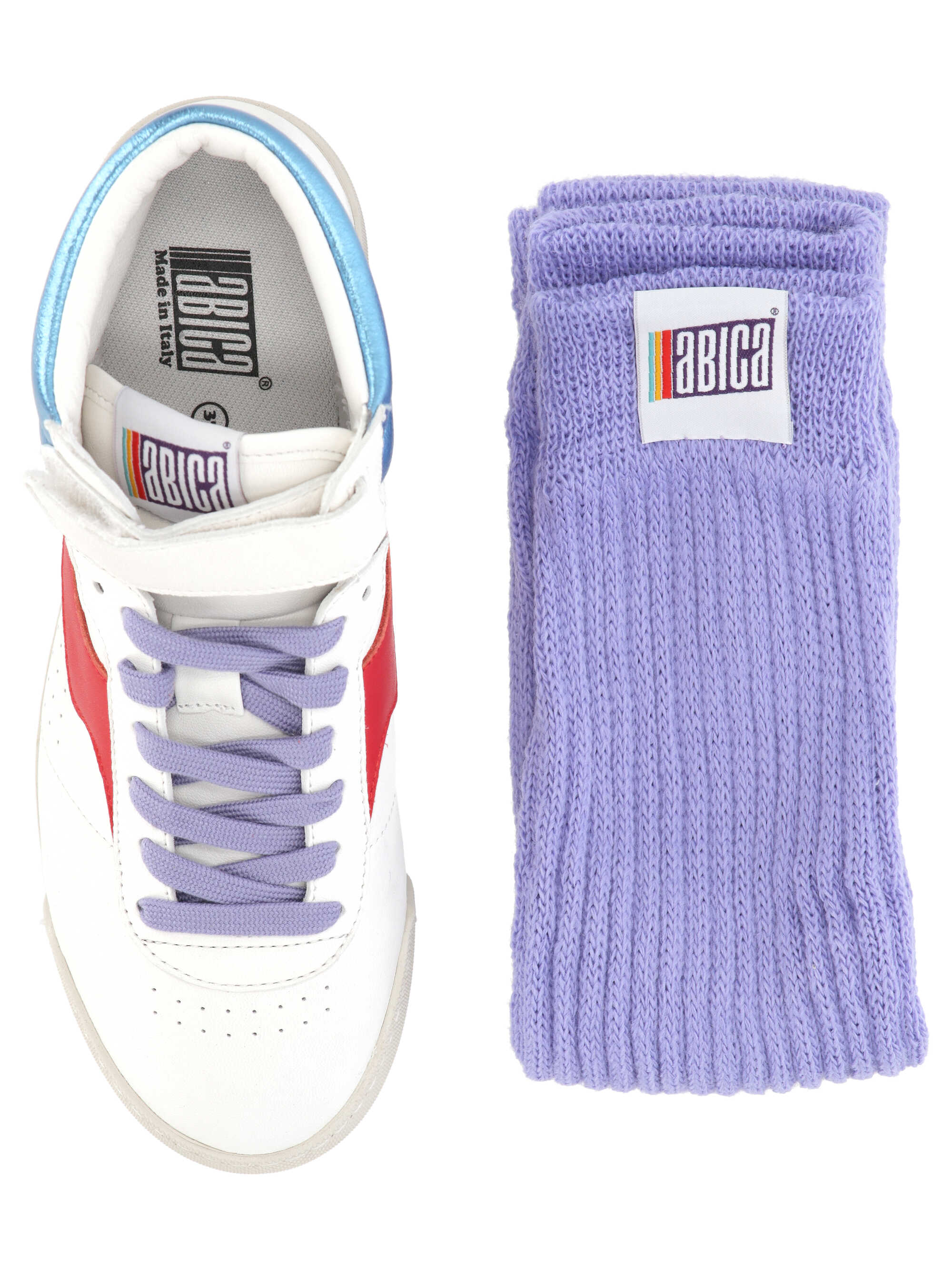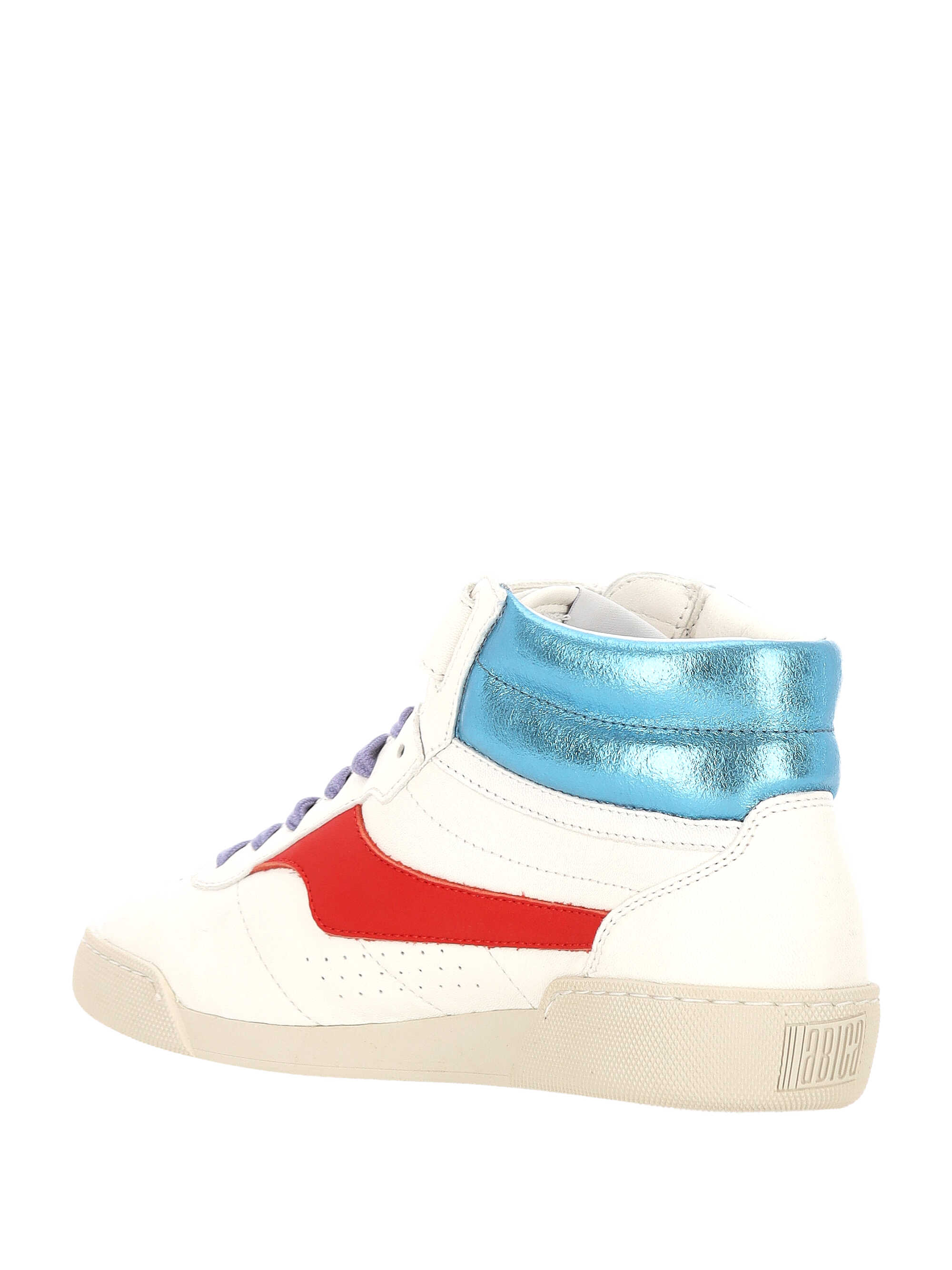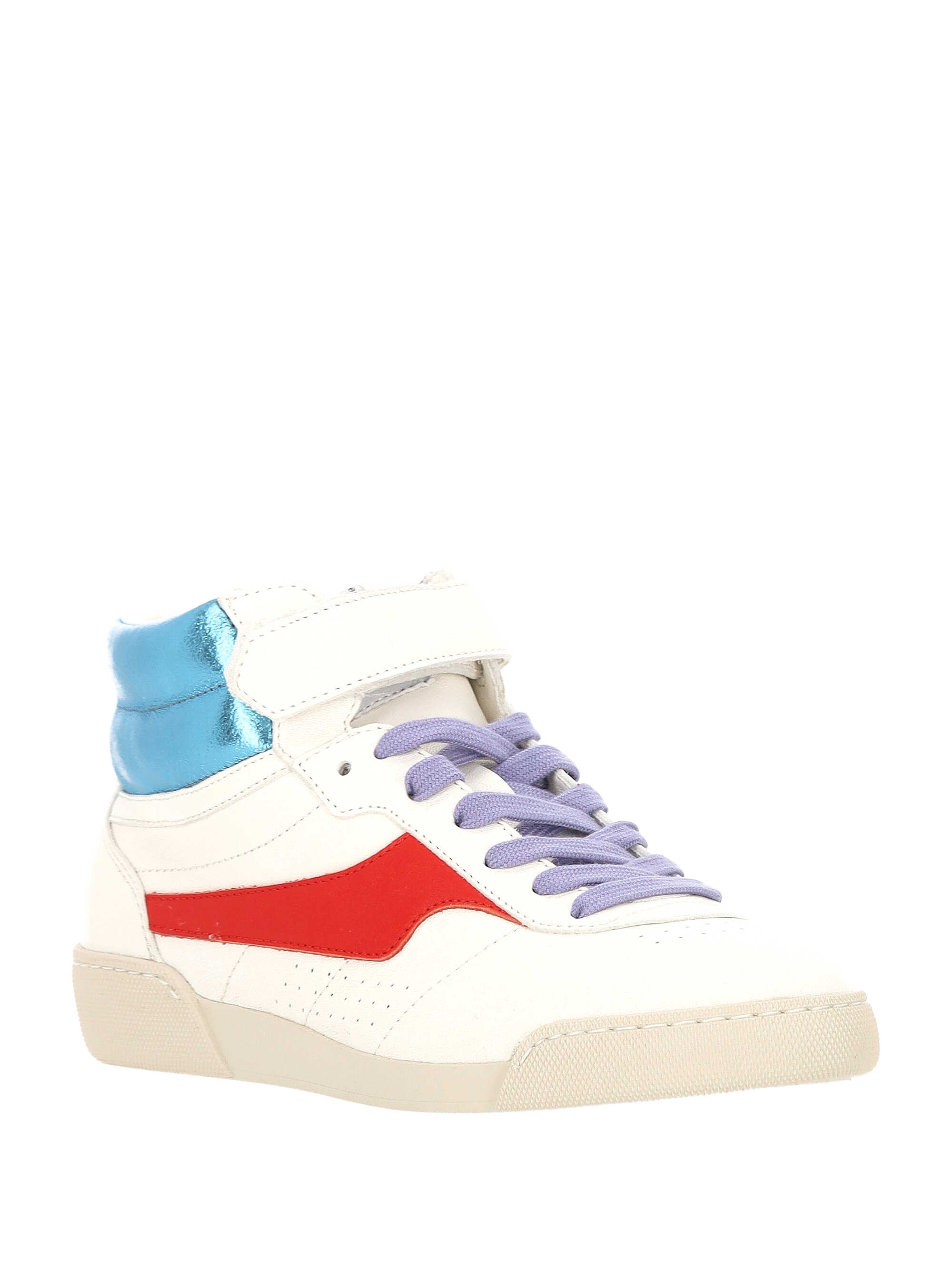 Red blue?sneaker front laceup fastening ankle padding perforated detail flat rubber sole