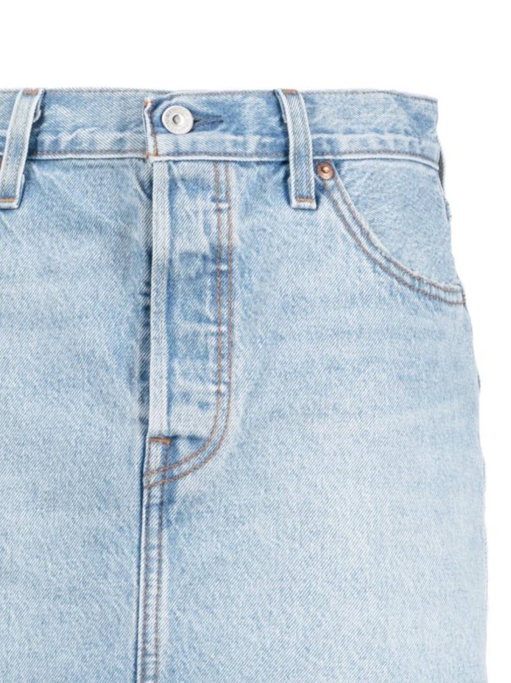 Denim skirt midrise and iconic Levis details On the B side two back pockets designed to enhance the shape just like in the 501 jeans