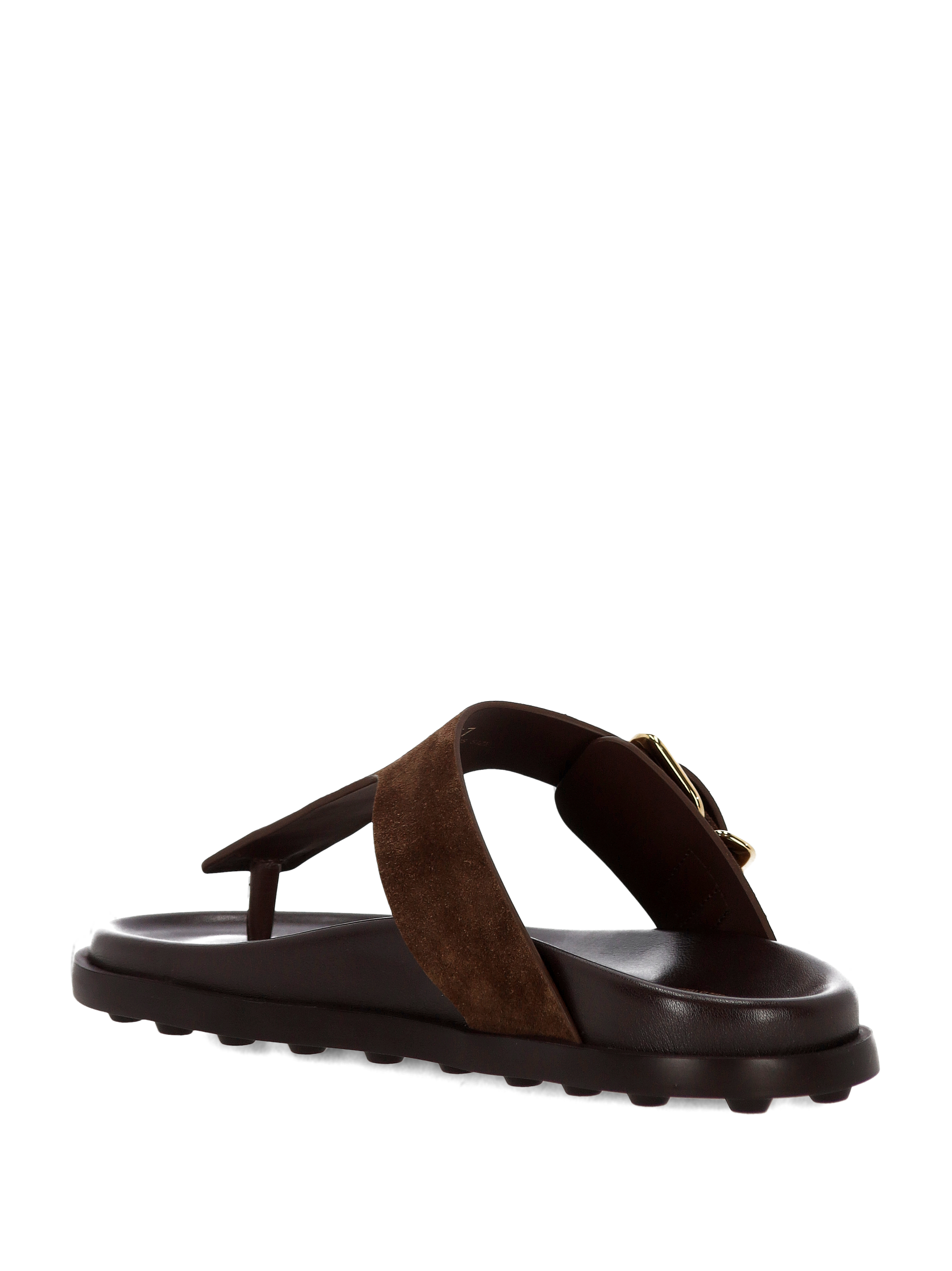 coffee brown side buckle fastening moulded footbed thong strap rubber sole