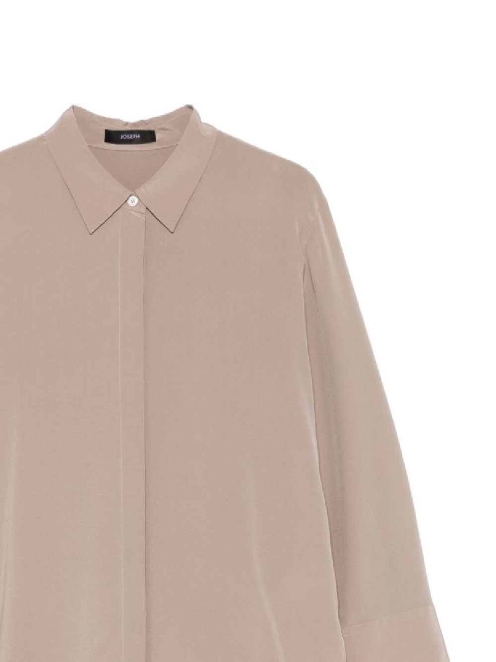 taupe brown concealed front button fastening buttoned cuffs side slits long sleeves