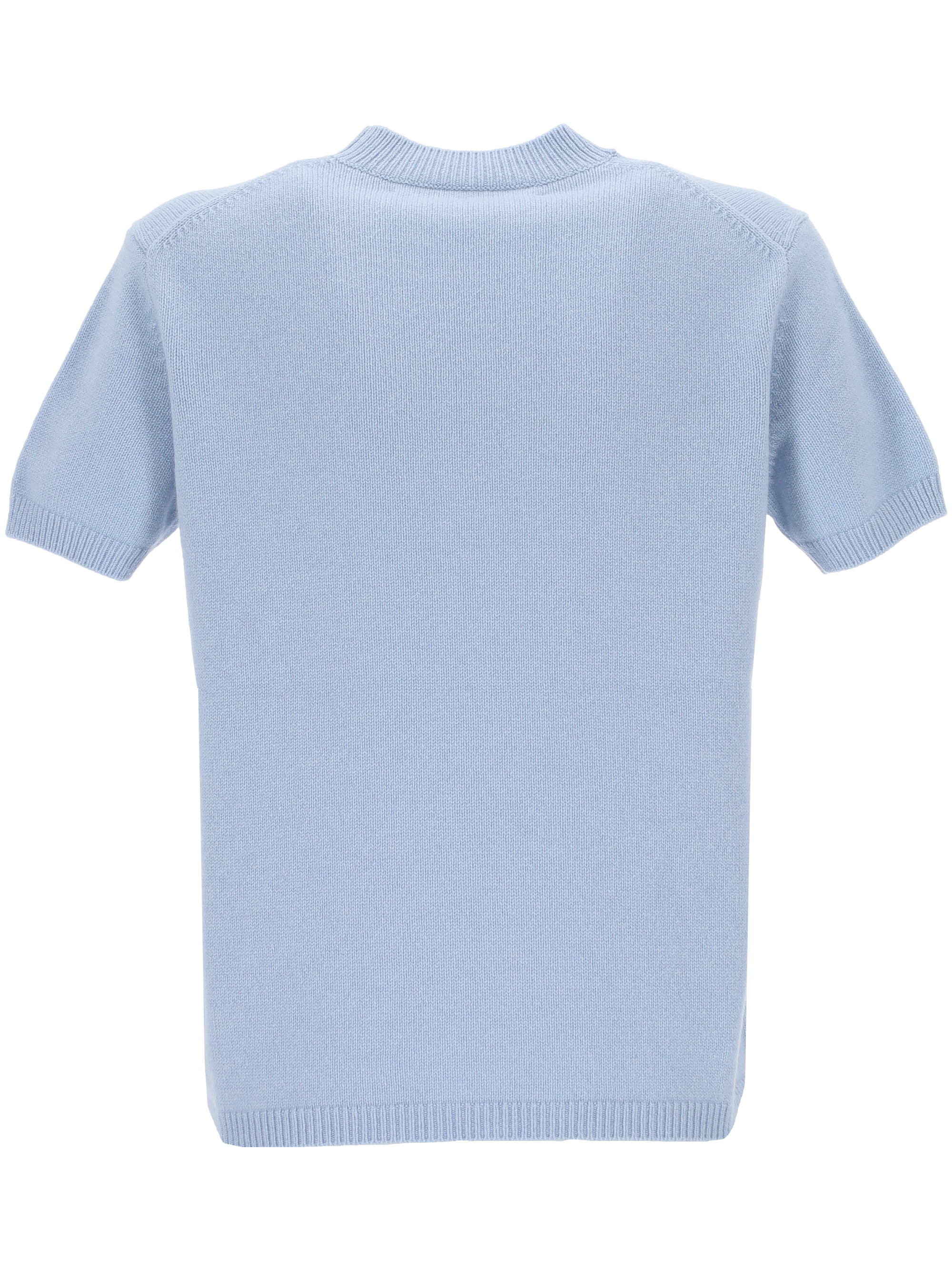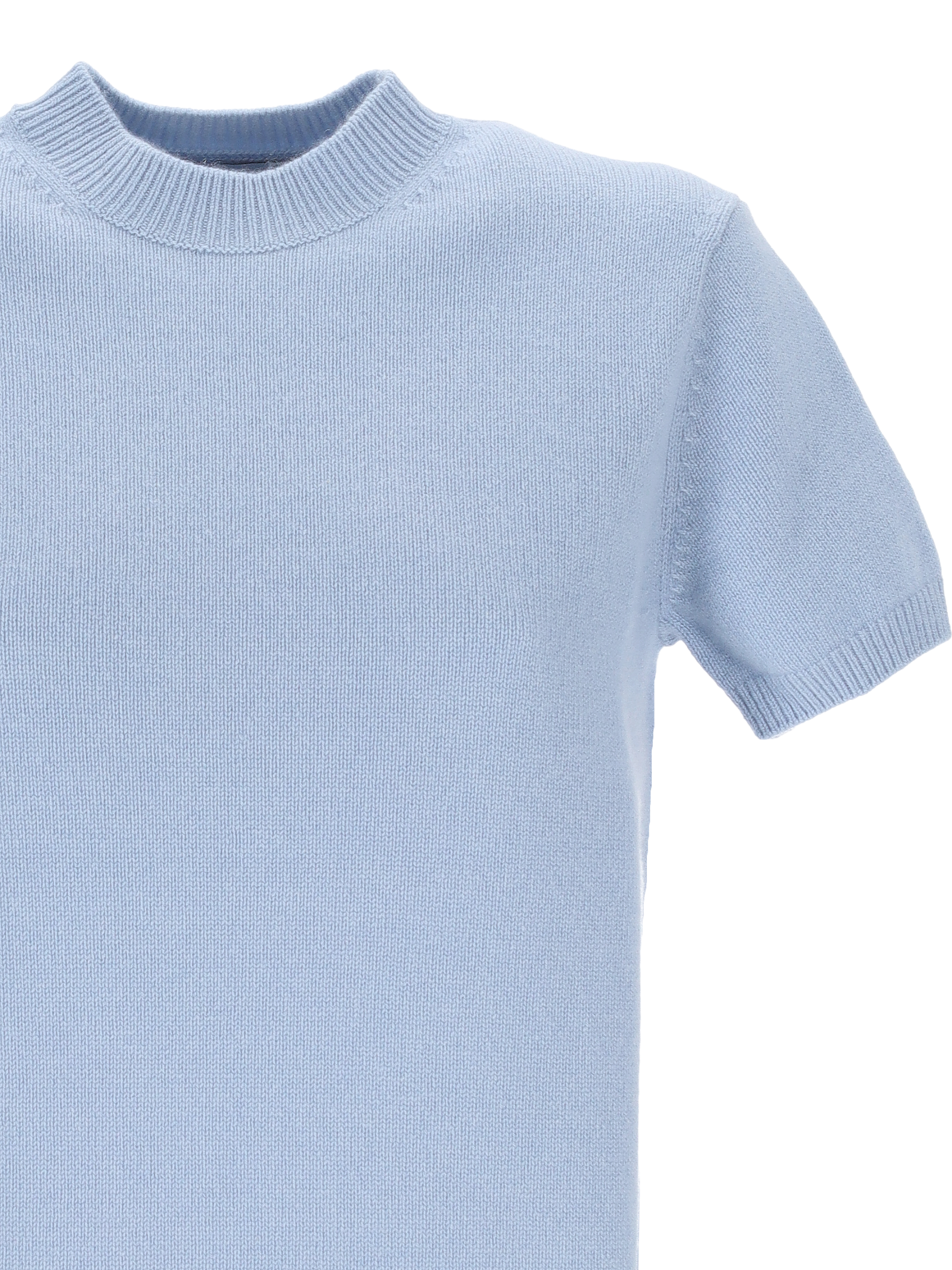 sky blue crew neck short sleeves ribbed cuffs and hem
