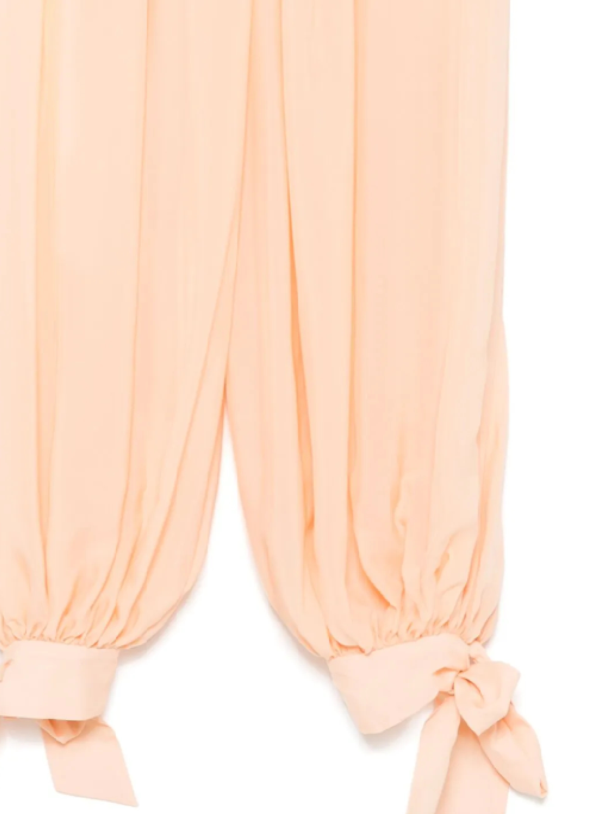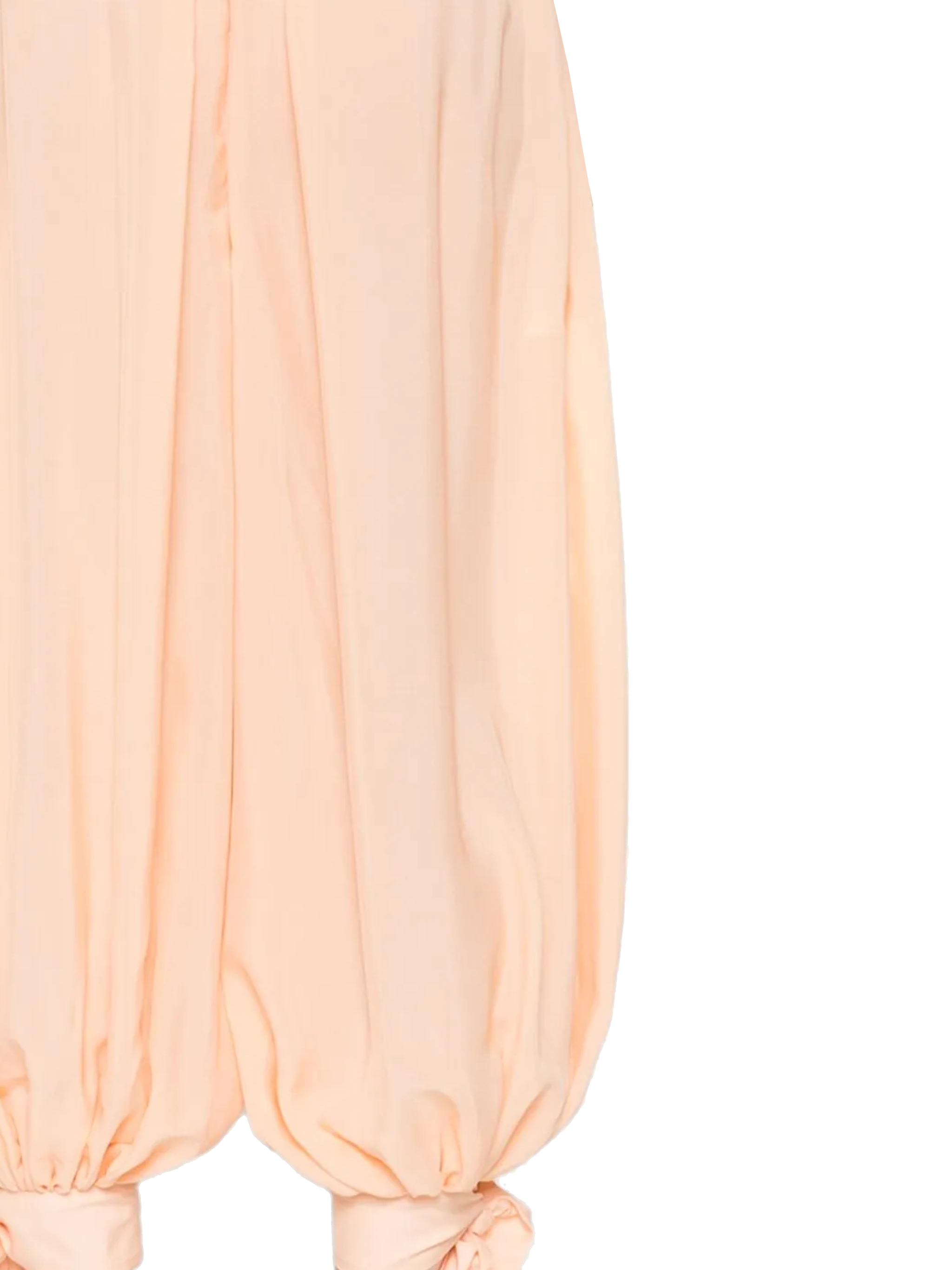peach pinkside closure with hidden zipbeltstwo slanted side pocketsruffle detail