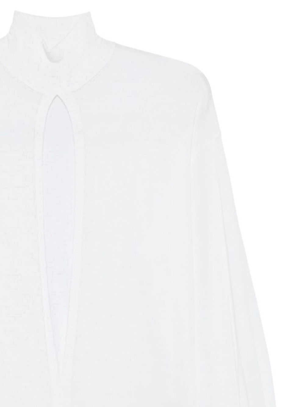 Body with slit in superfine knitFlowing lineHigh neck long sleeves fitted waist classic culotte