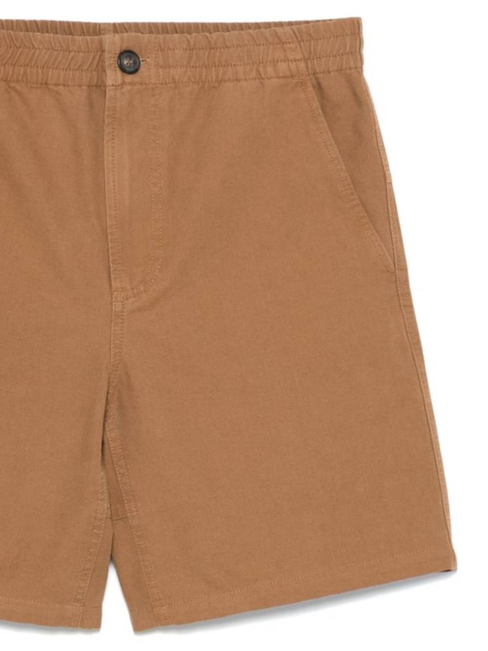 camel brown front button and zip fastening elasticated waistband two diagonal pockets to the sides two rear patch pockets