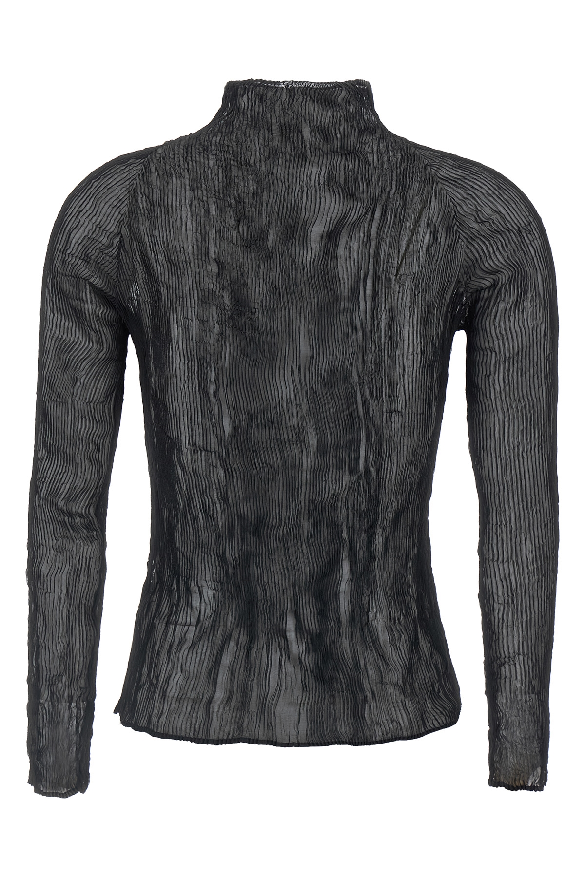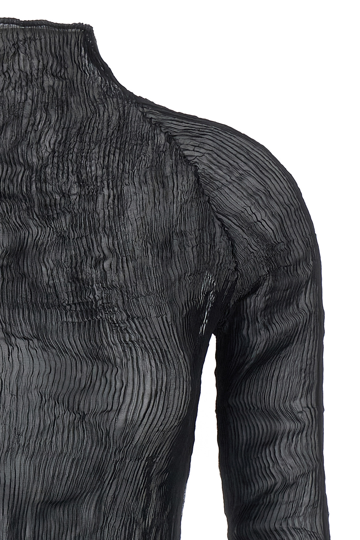'Chiffon Twist-56' sweater in semi-transparent pleated fabric, high neck, long sleeves. SUSTAINABLE: Product made from recycled polyester
