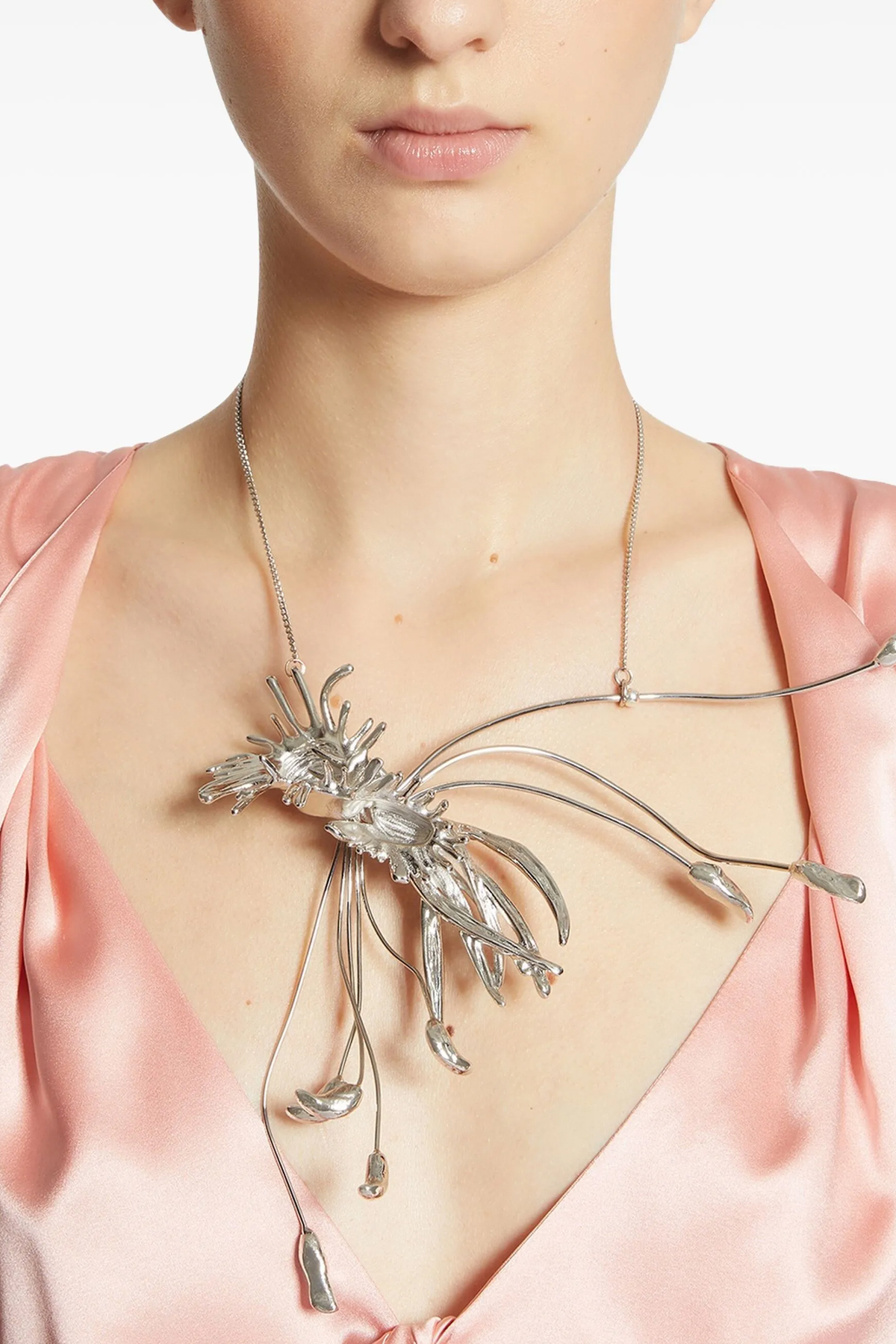 Aluminium, metal and brass necklace with 'Exotic Flower', hook closure, adjustable.