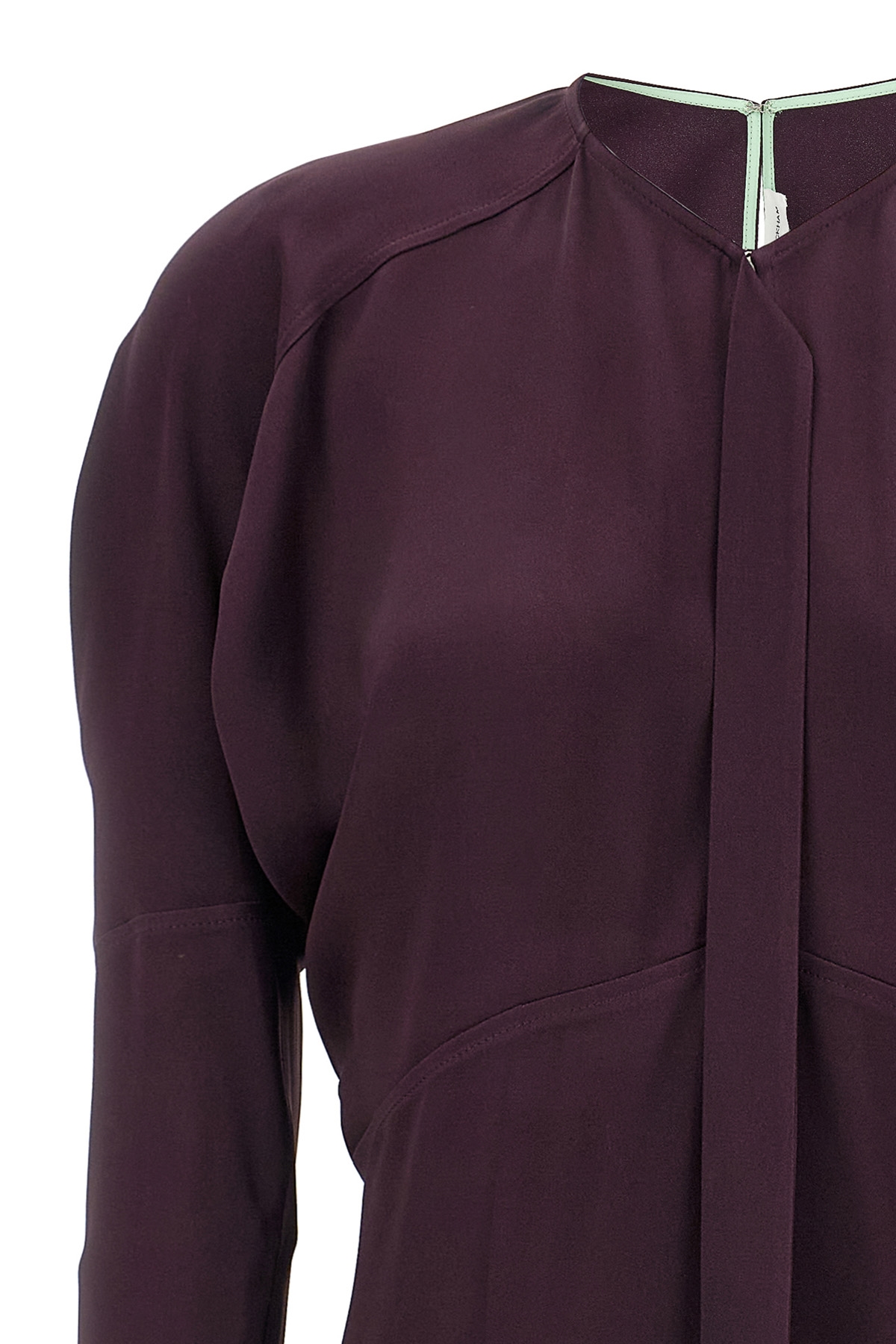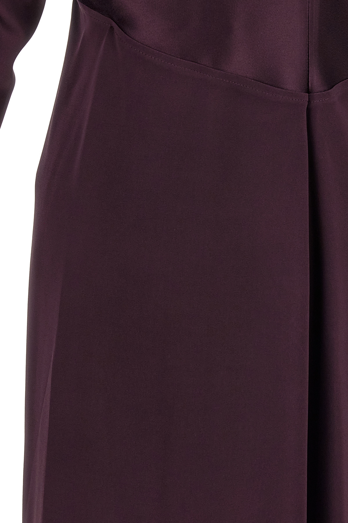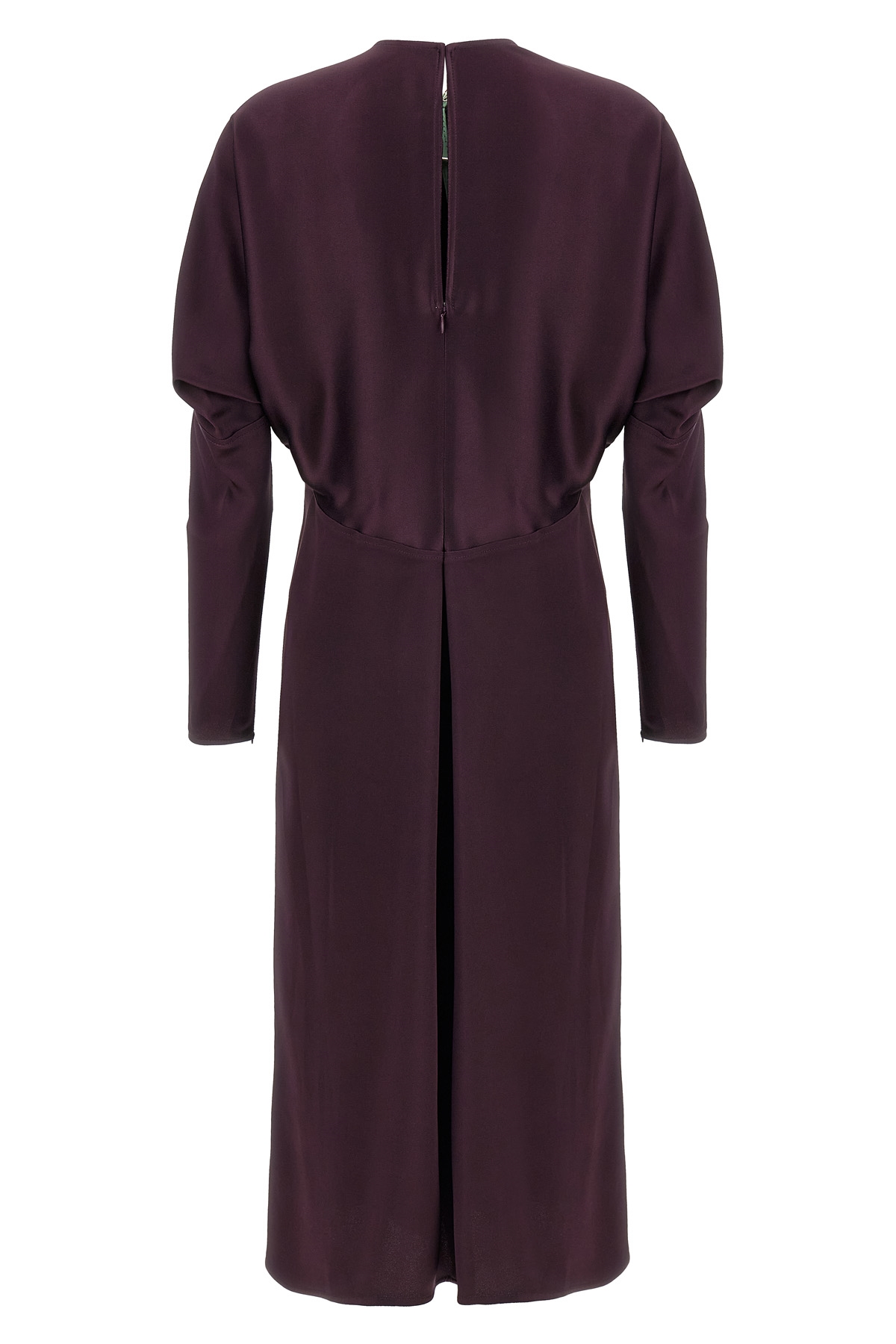 'Keyhole Dolman Midi' dress in fluid Fig, crew neck with tie to be left free, front teardrop cut-out detail with two-button closure, silhouette high on the hips and relaxed on the bodice, long bat sleeves with zip on the cuffs, zip and button closure with cut out detail at the back.