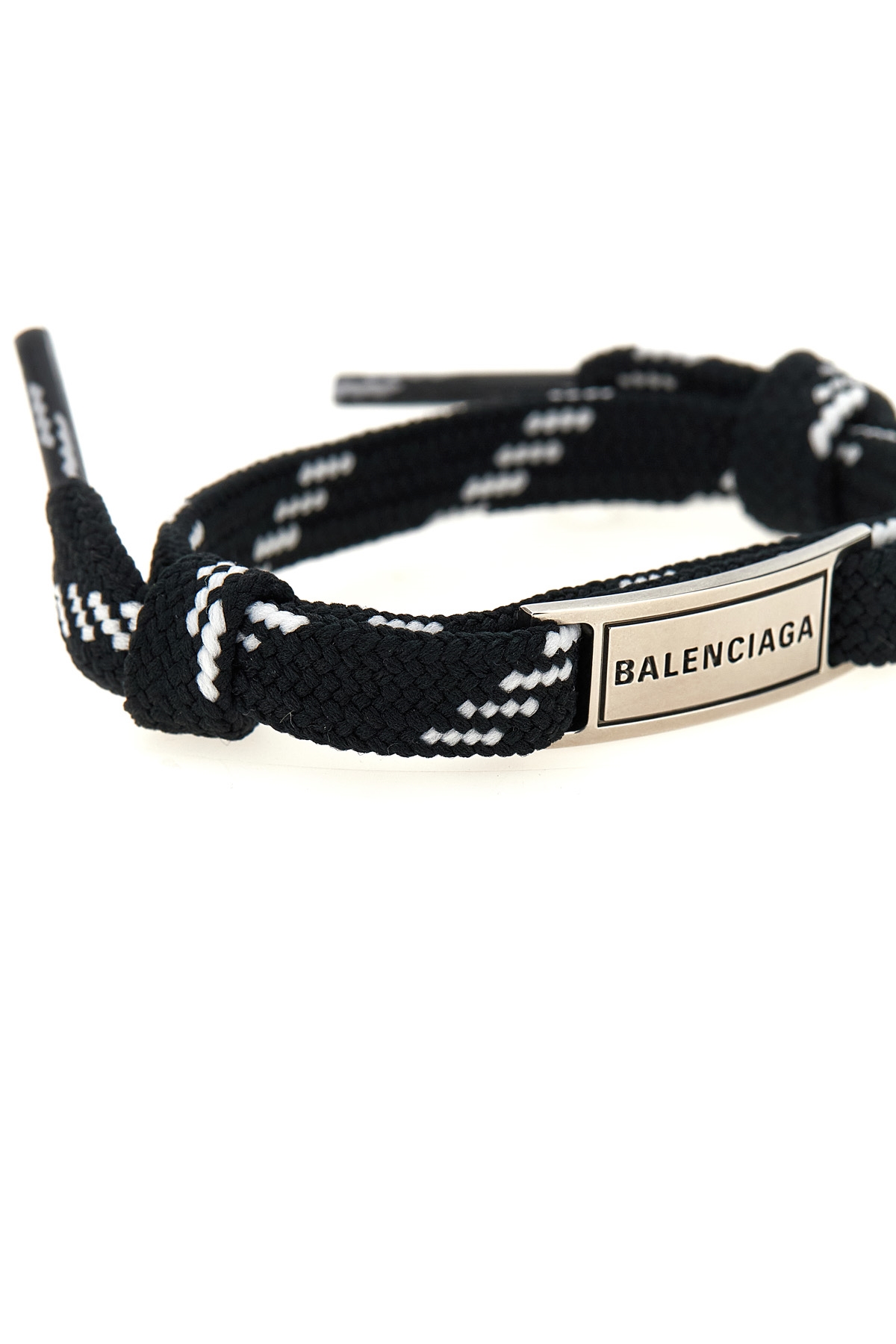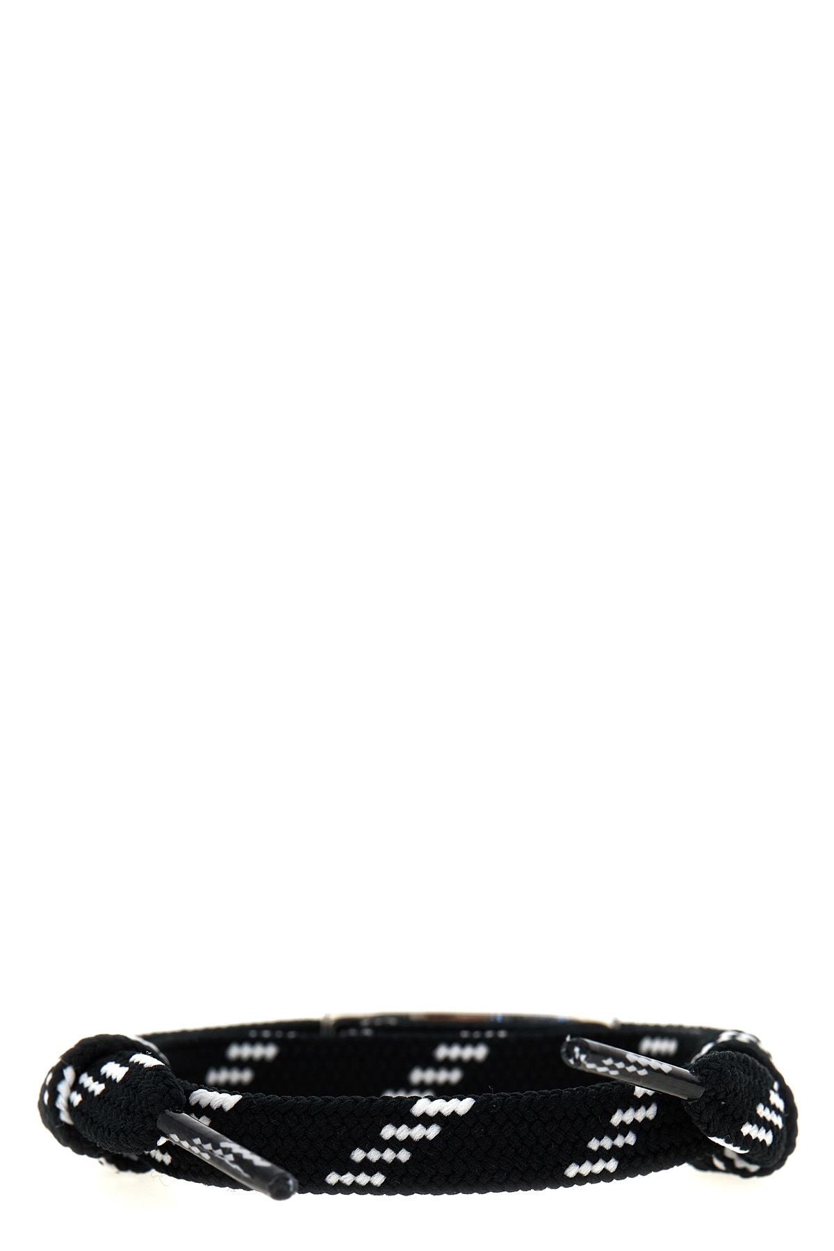 'Cargo' bracelet in polyester and cotton, antiqued silver brass plaque with engraved logo, adjustable.