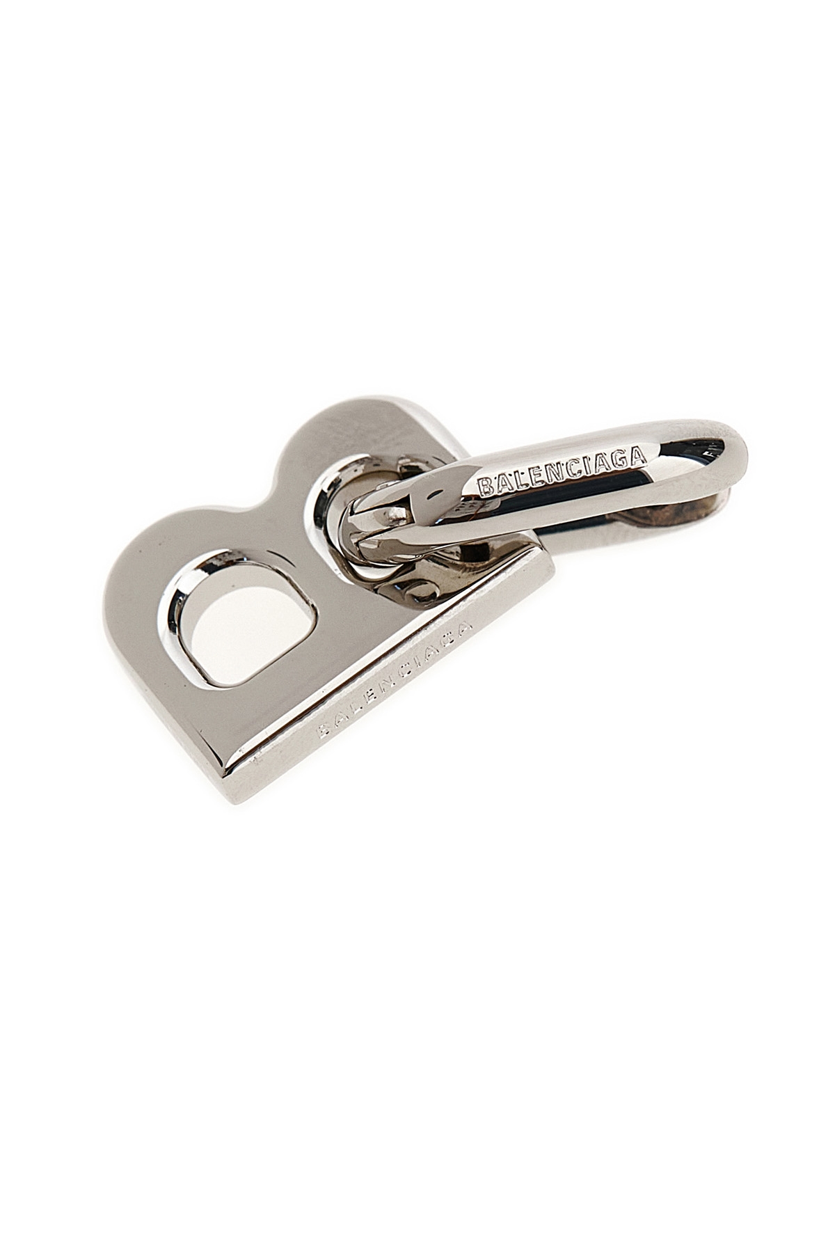'B Chain XS' earrings in polished silver brass with pendant. ITEM CANNOT BE RETURNED