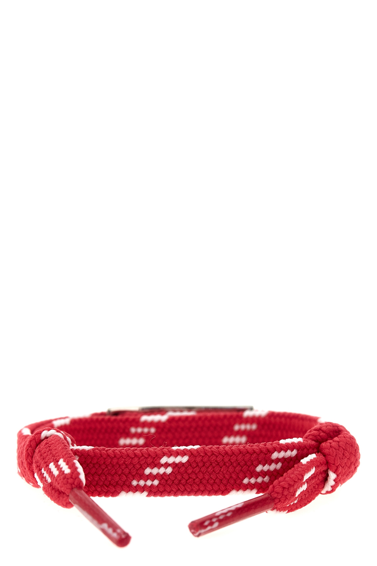 'Cargo' bracelet in polyester and cotton, antiqued silver brass plaque with engraved logo, adjustable.