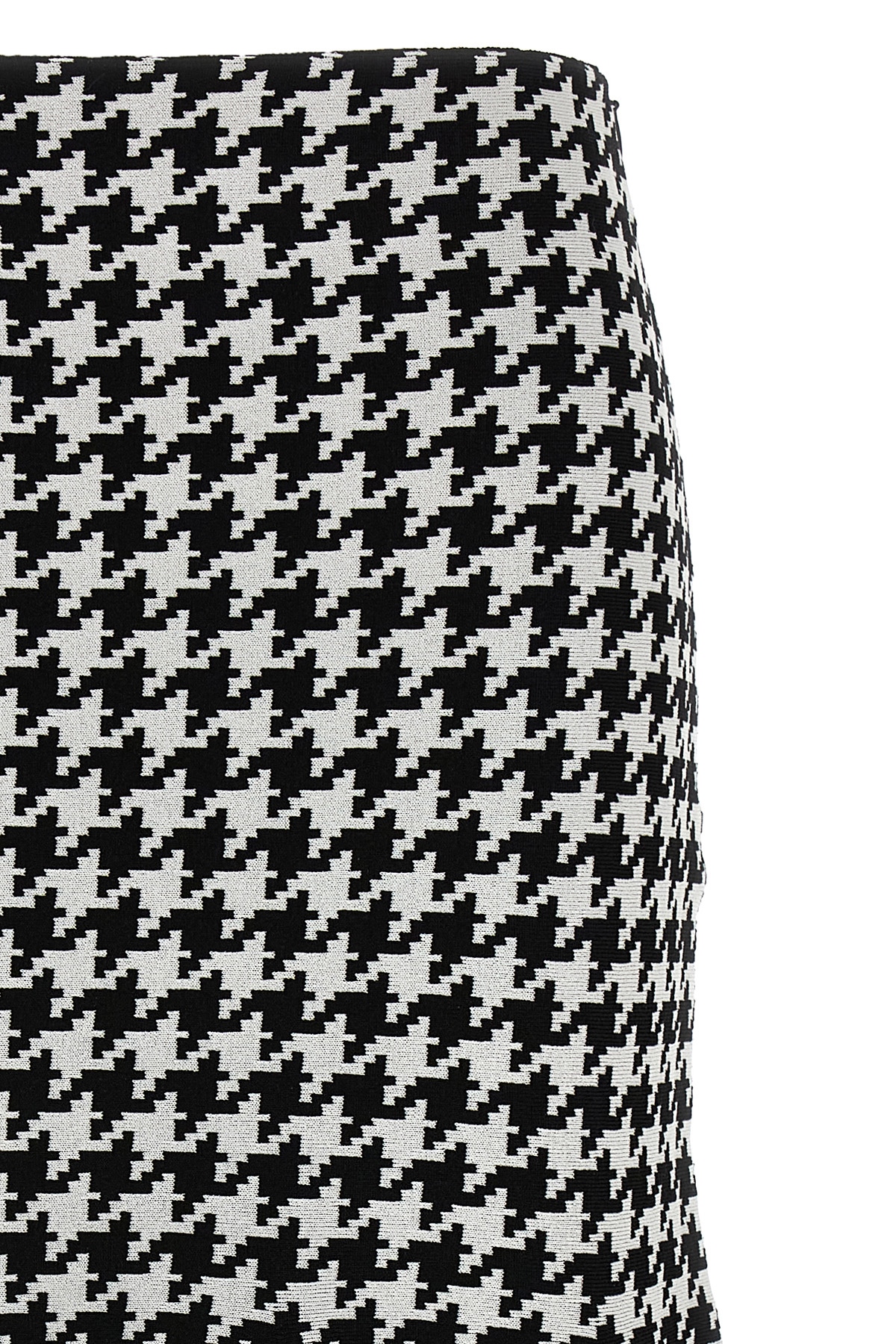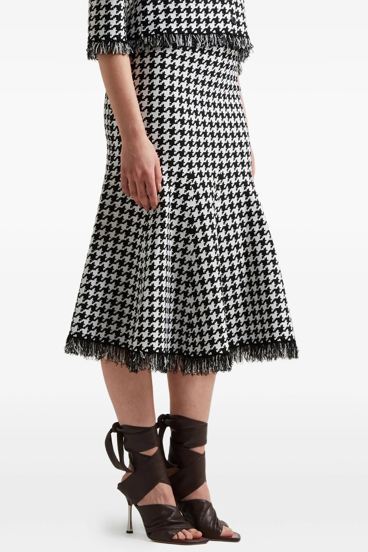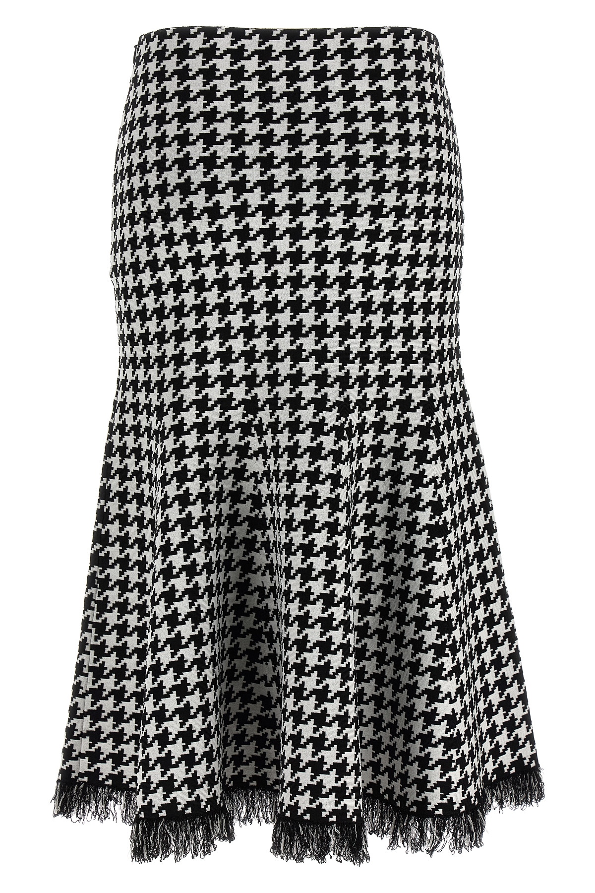 Midi skirt in jacquard fabric with houndstooth pattern, high waist model with flared silhouette, side zip closure, fringes on the hem.