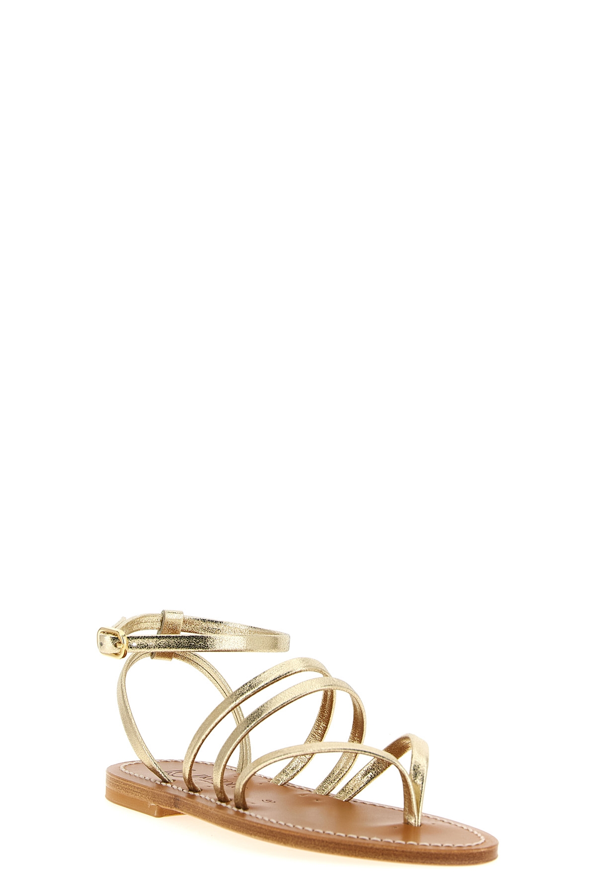 'Hemeree' laminated leather thong sandals with adjustable ankle strap, leather sole.