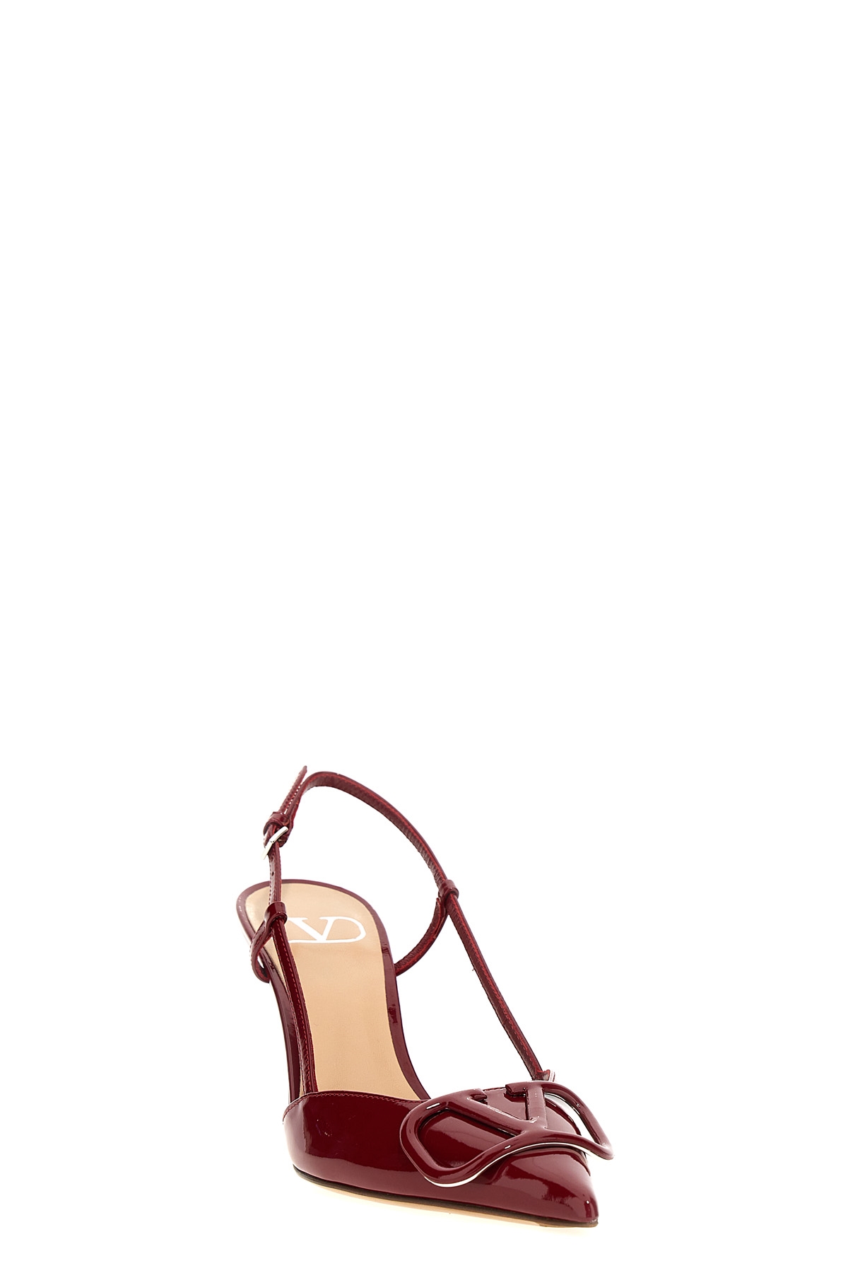 Patent leather slingbacks, front 'VLogo Signature', pointed toe, adjustable strap, heel, leather sole.