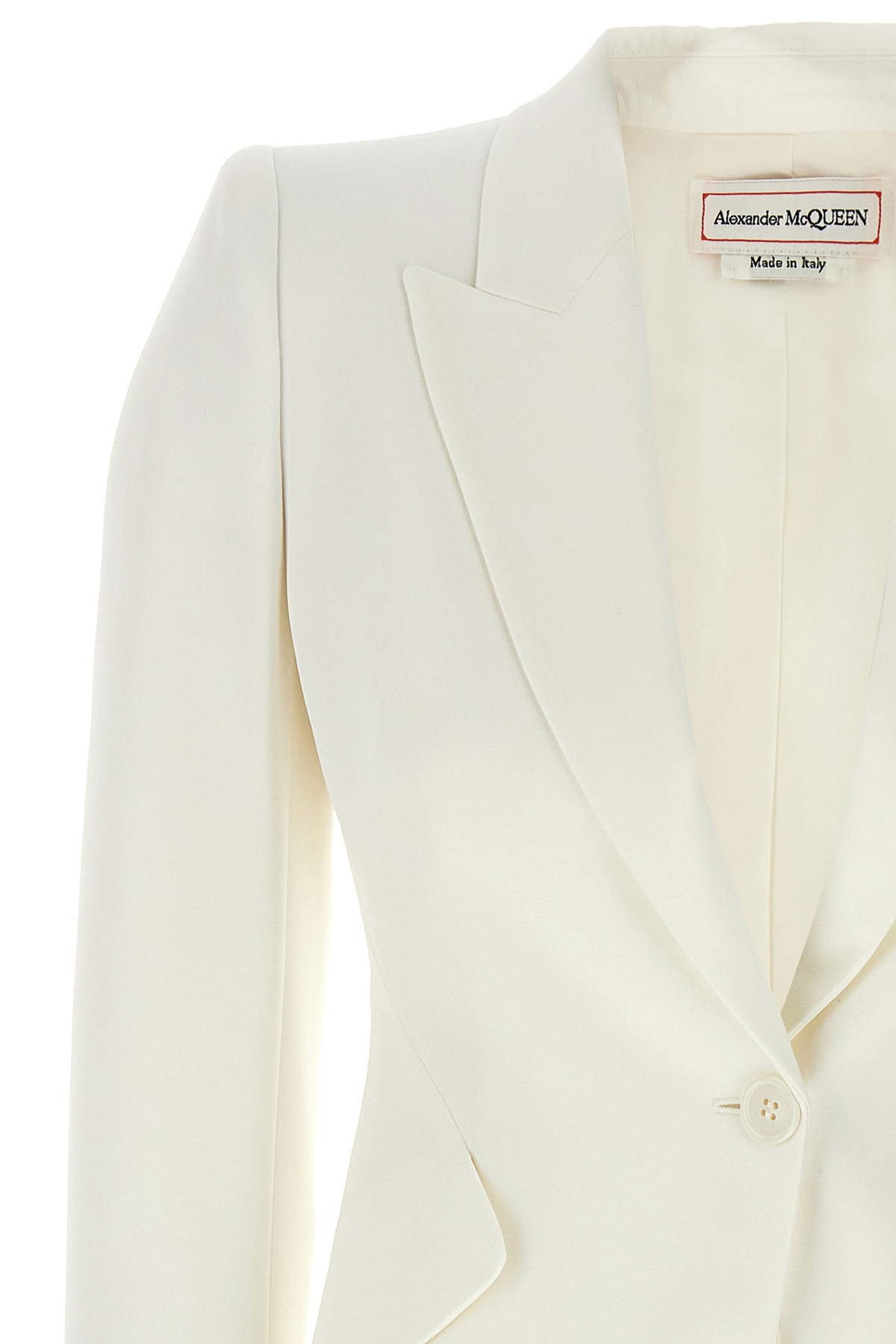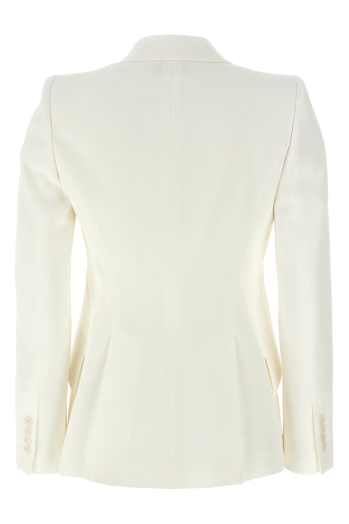 Single-breasted viscose blend blazer, button closure, side pockets, peaked lapels, double back slit, long sleeves with buttons. buttons.