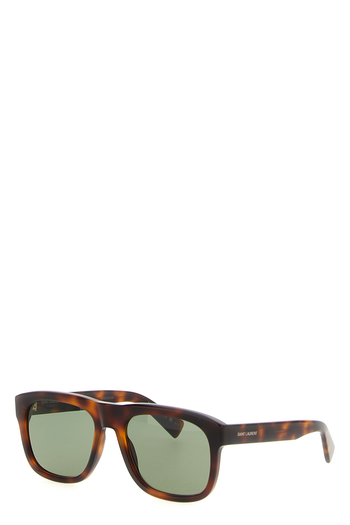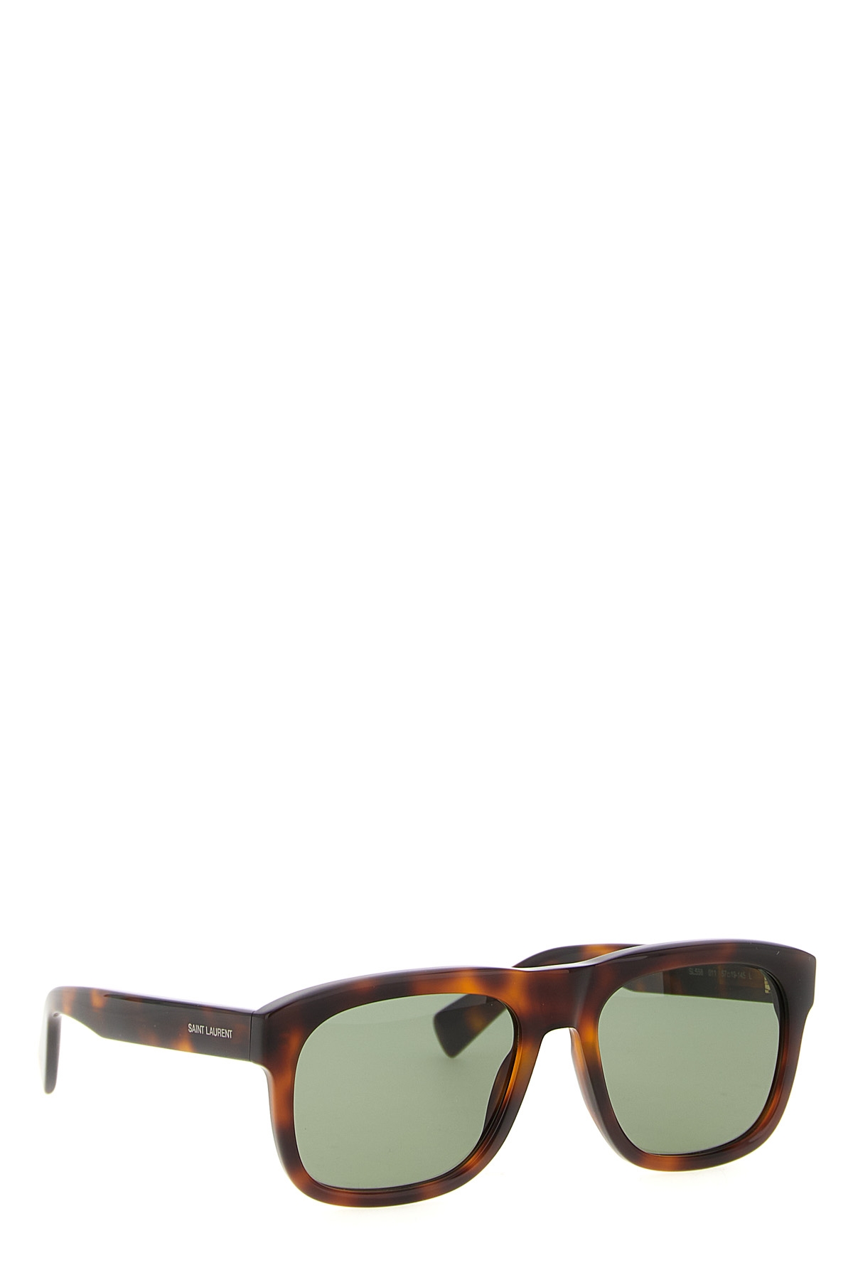 'SL 558' tortoiseshell acetate sunglasses with nylon lenses, aviator model with square frame, logo engraved on temples.