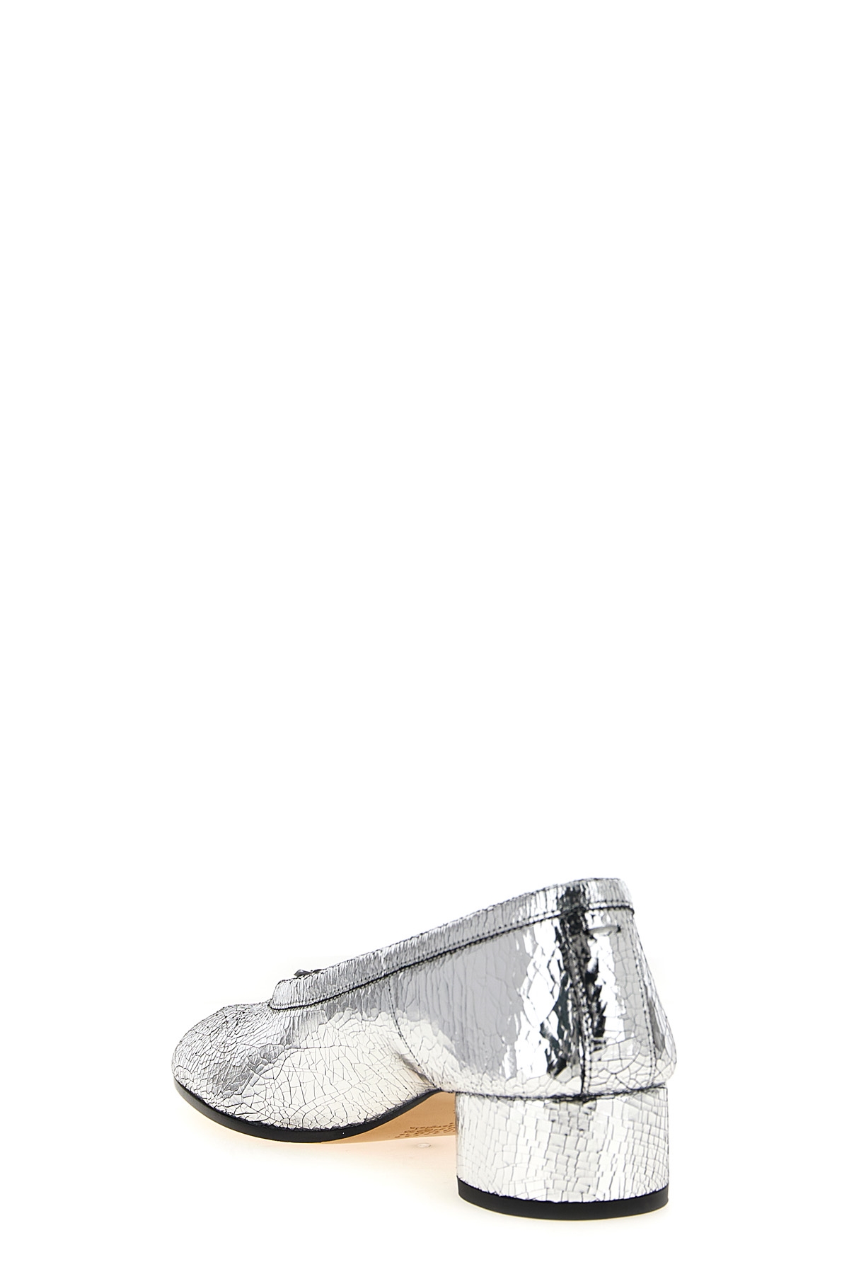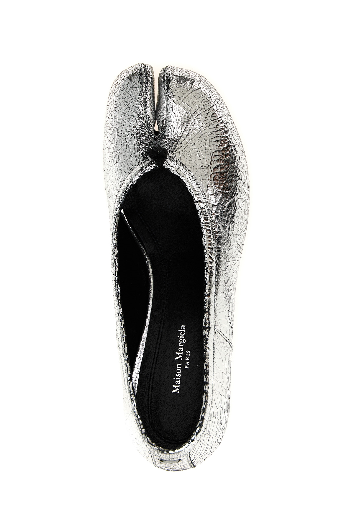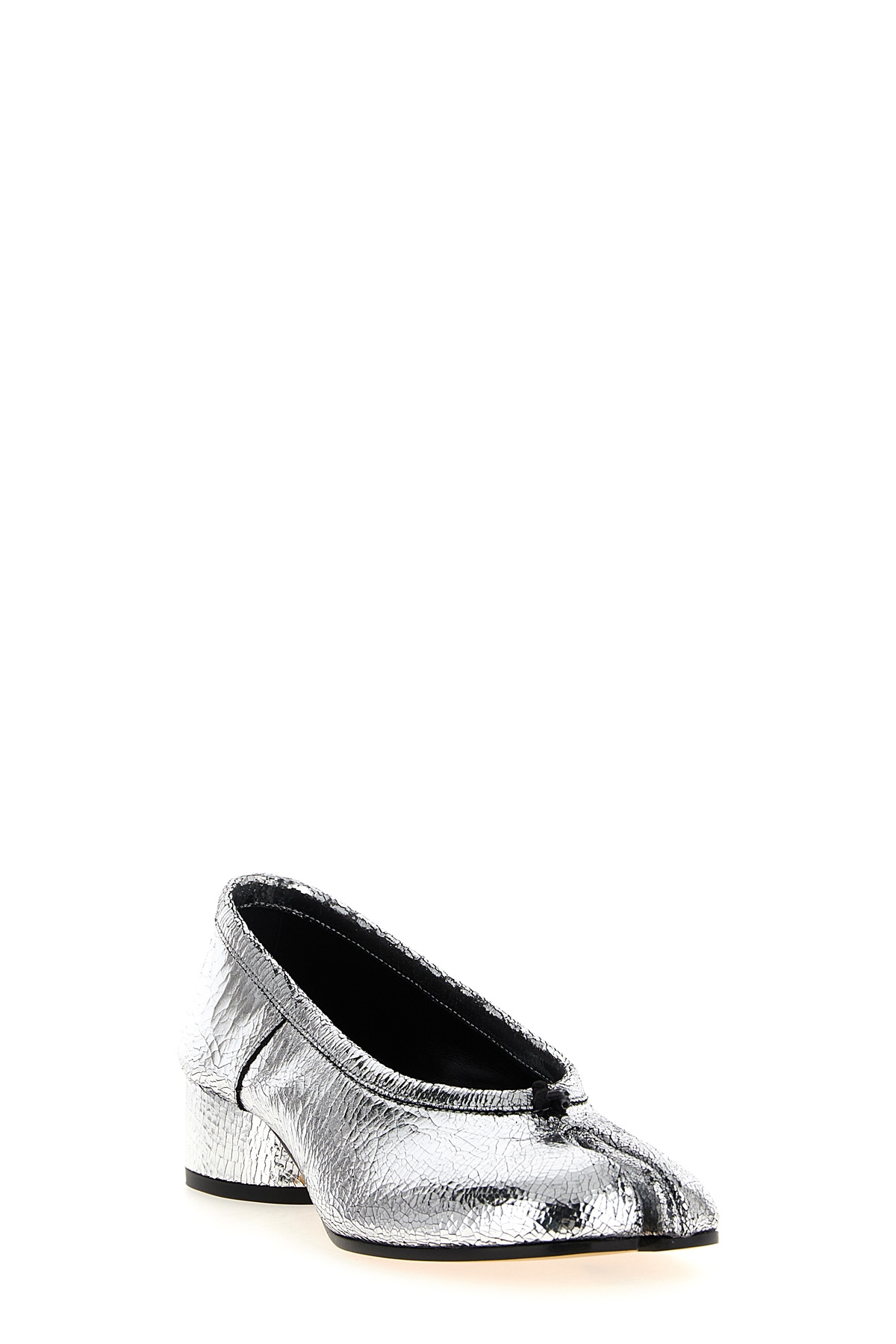 Craqule mirror leather ballet flats with 'Tabi' cut on the toe, cylindrical heel, leather sole