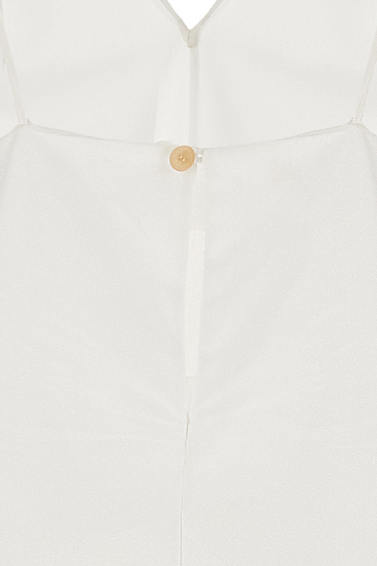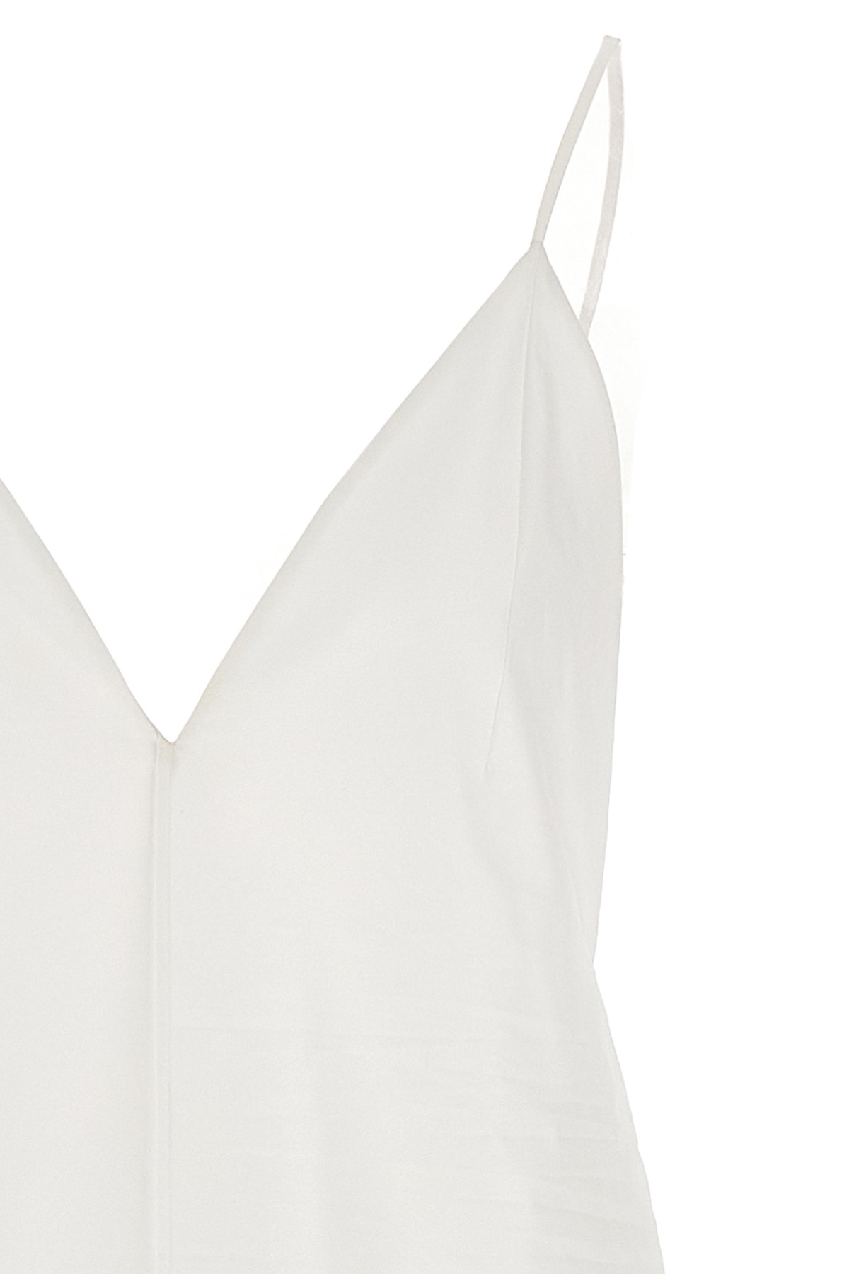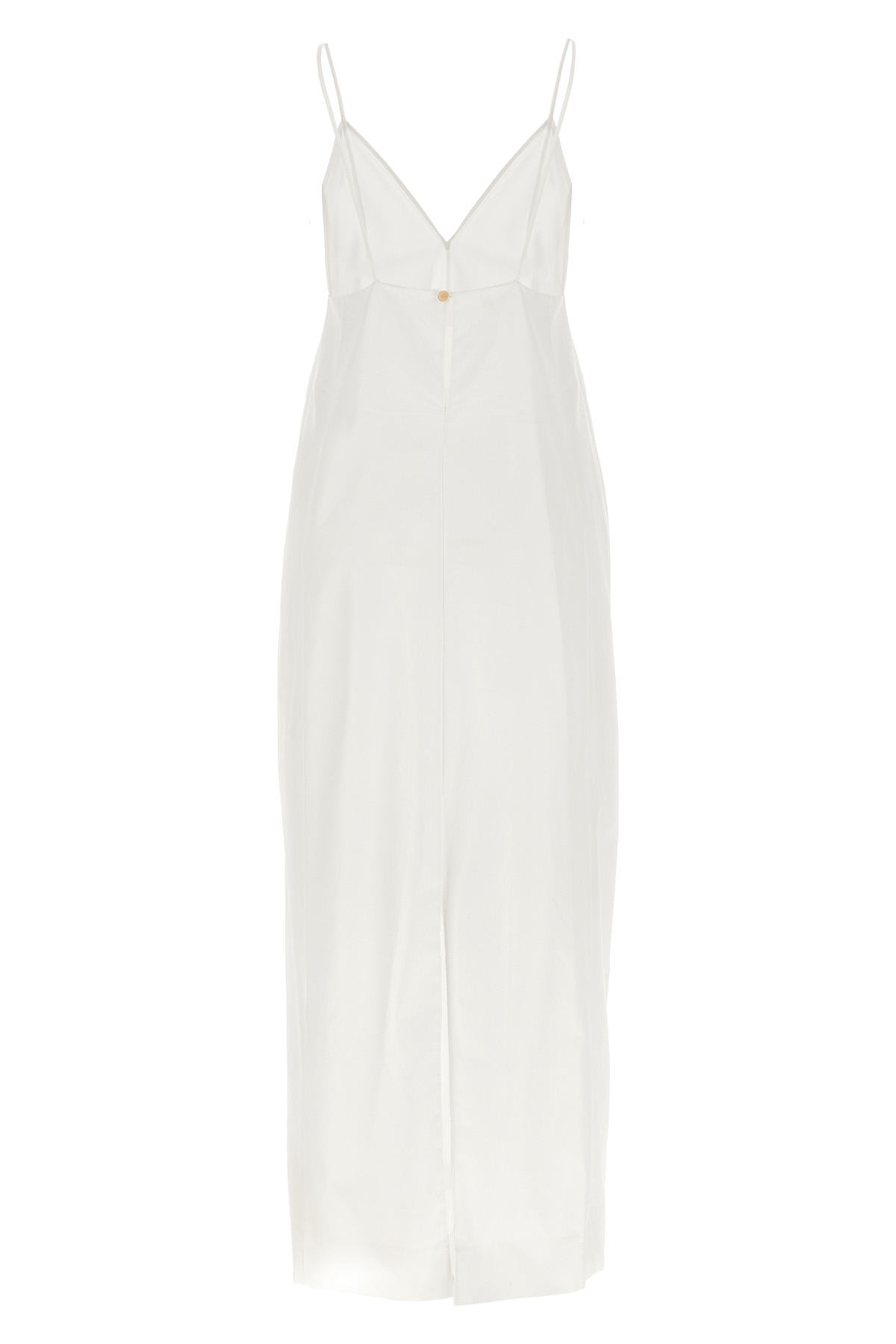 Long cotton 'Tulula' dress with front stitching detail, V-neck, thin straps, back button closure, back slit.