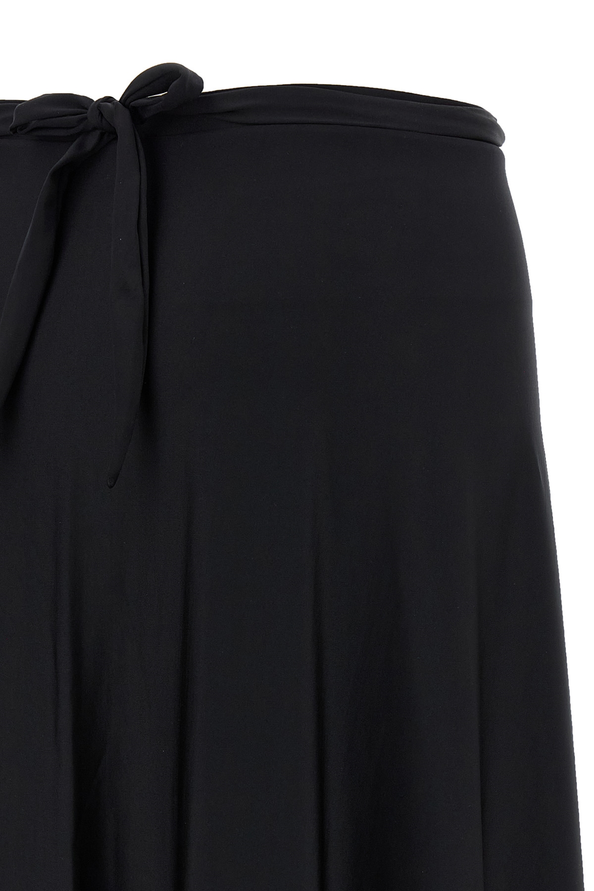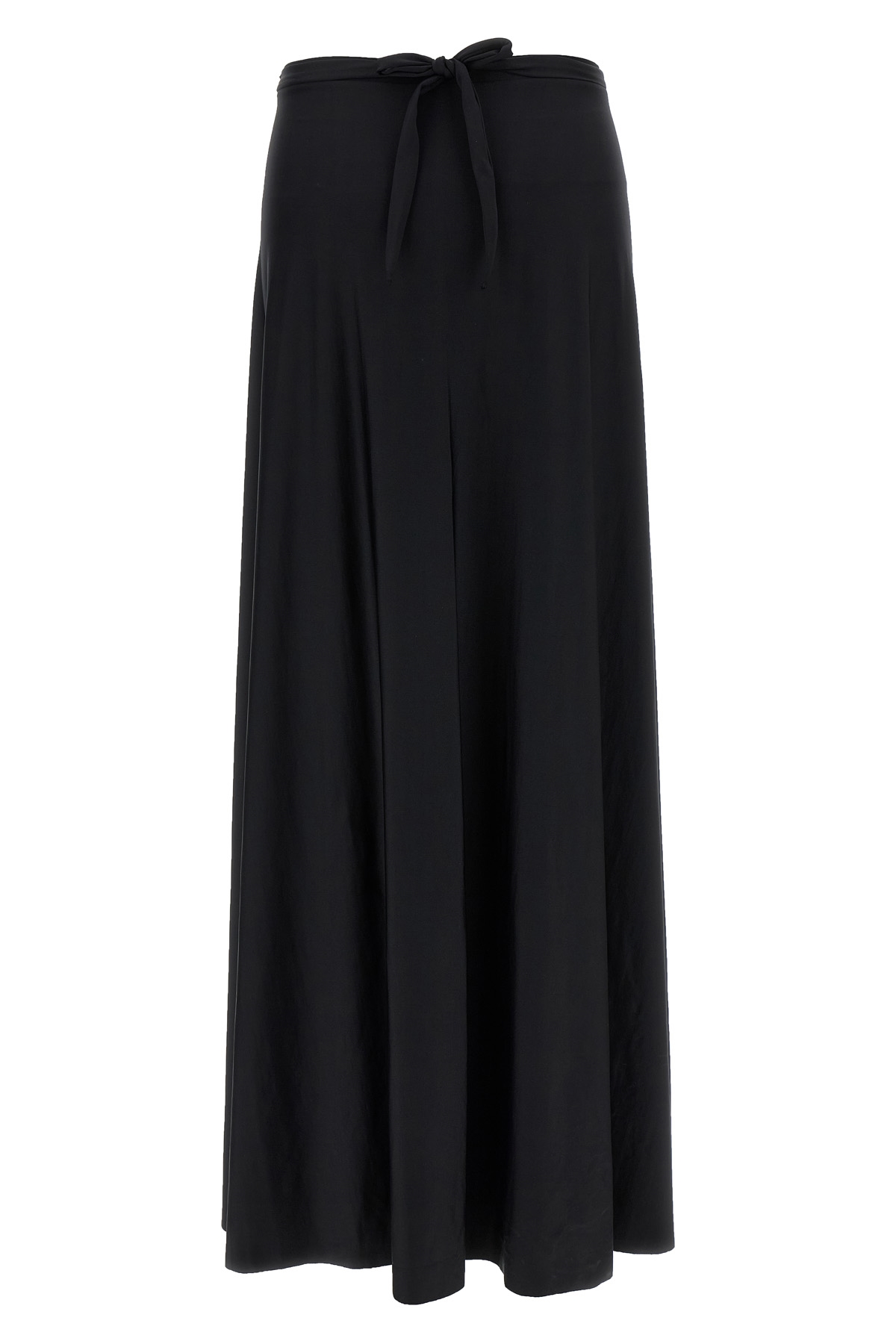 Long lycra skirt, wallet closure with tie-up strap, pareo style that can be used as a skirt with wrap closure or as a sarong dress tied at the neck.