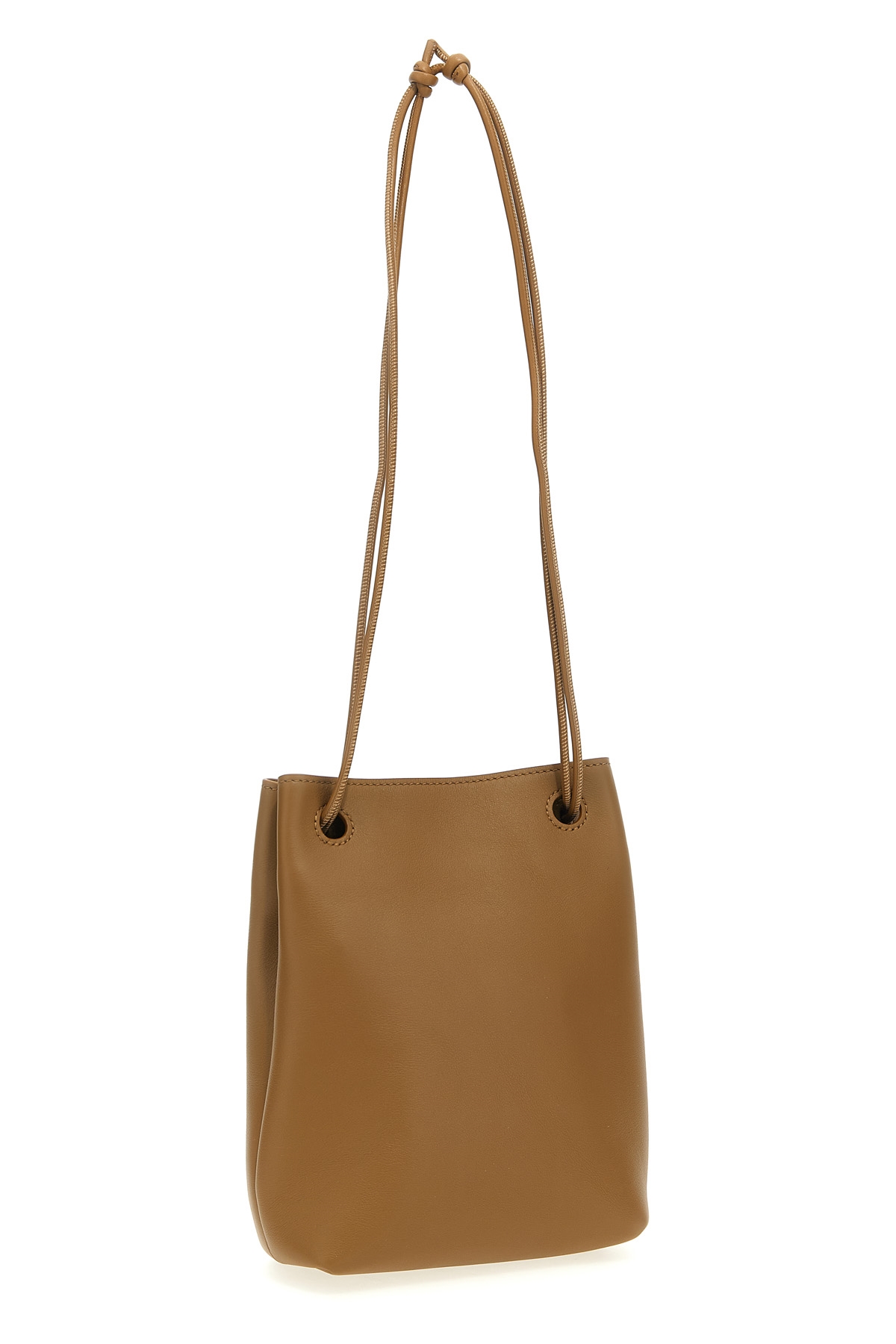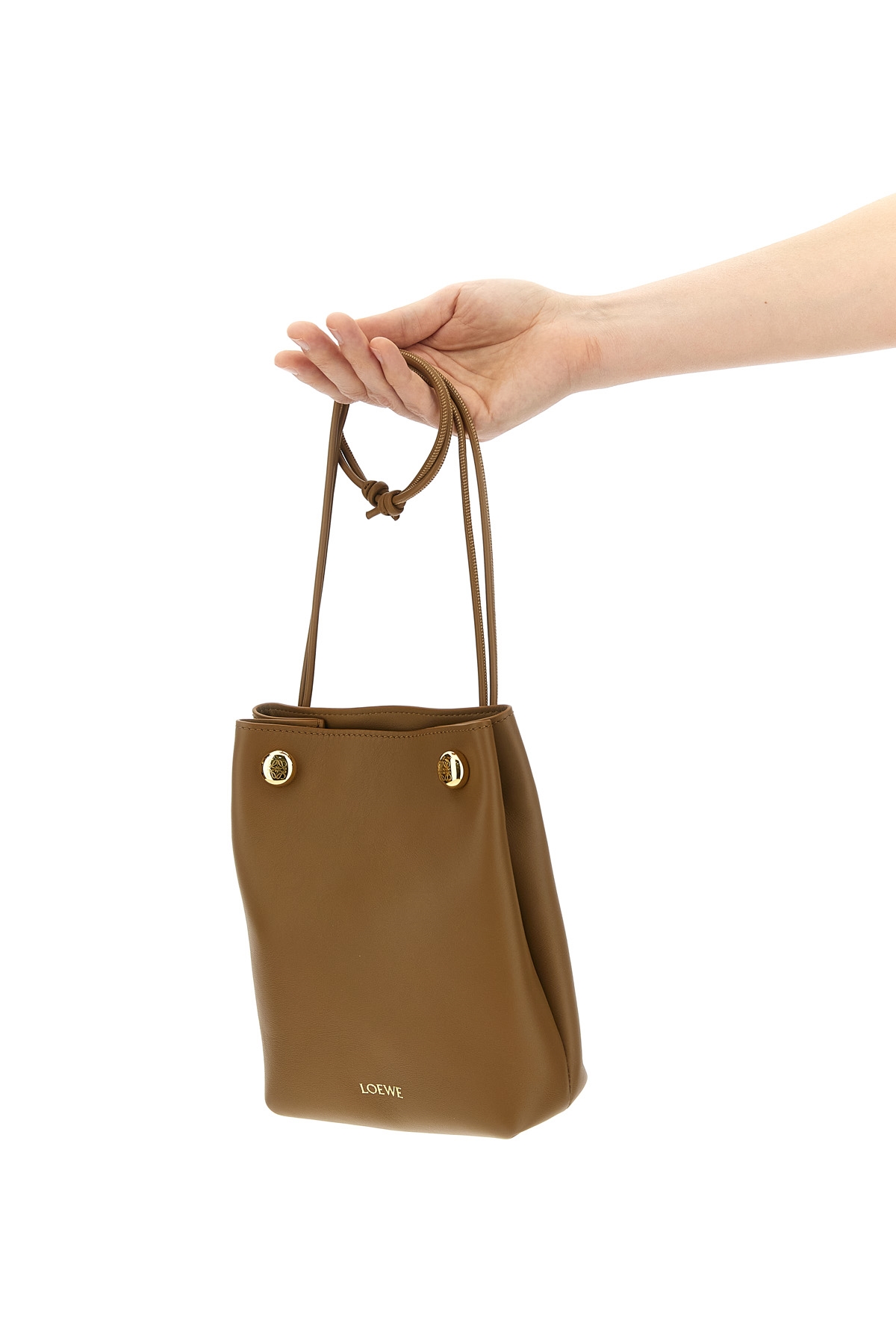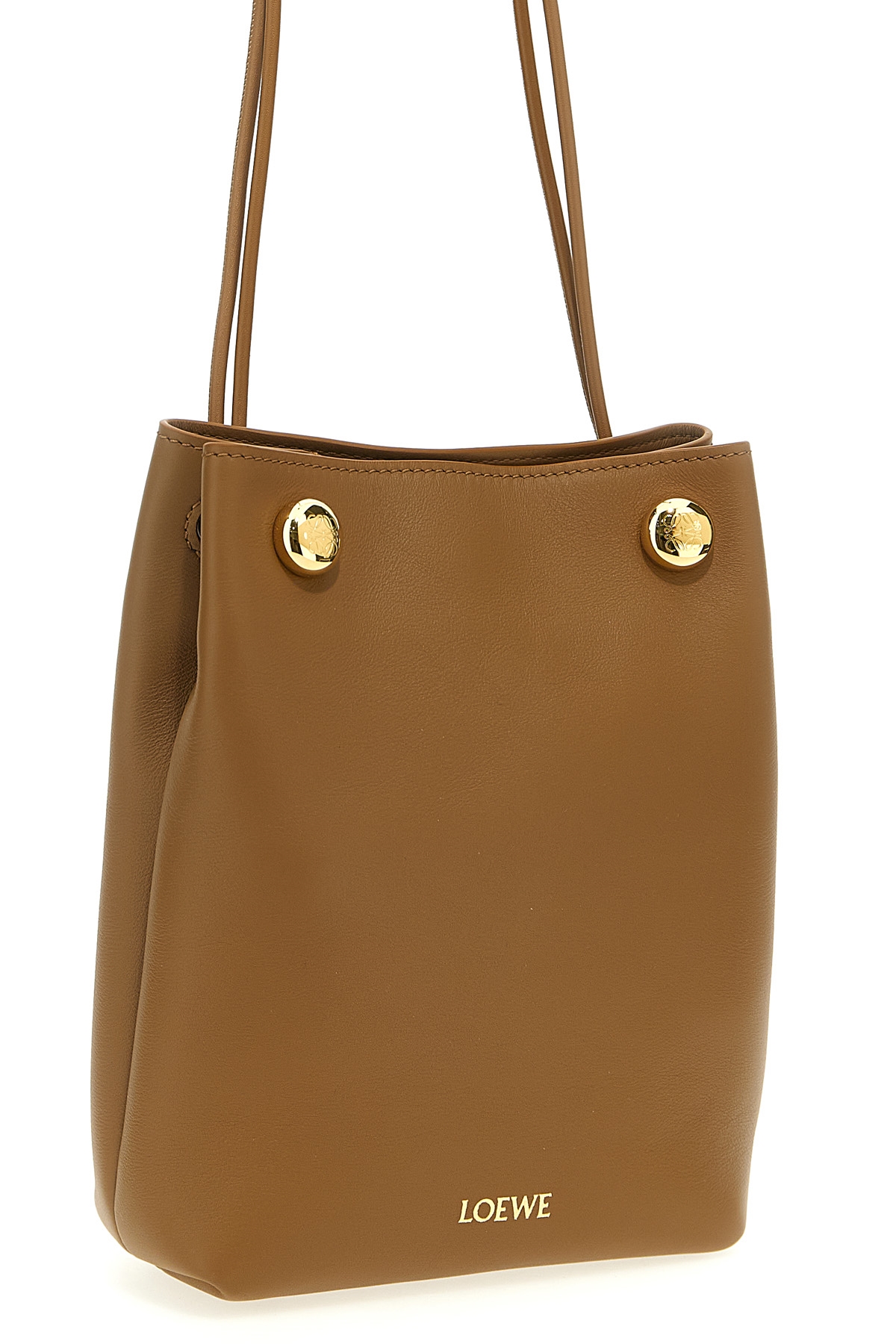 Smooth calf leather clutch bag, double gold metal Anagram 'Pebble' emblem and front embossed logo, adjustable shoulder strap.